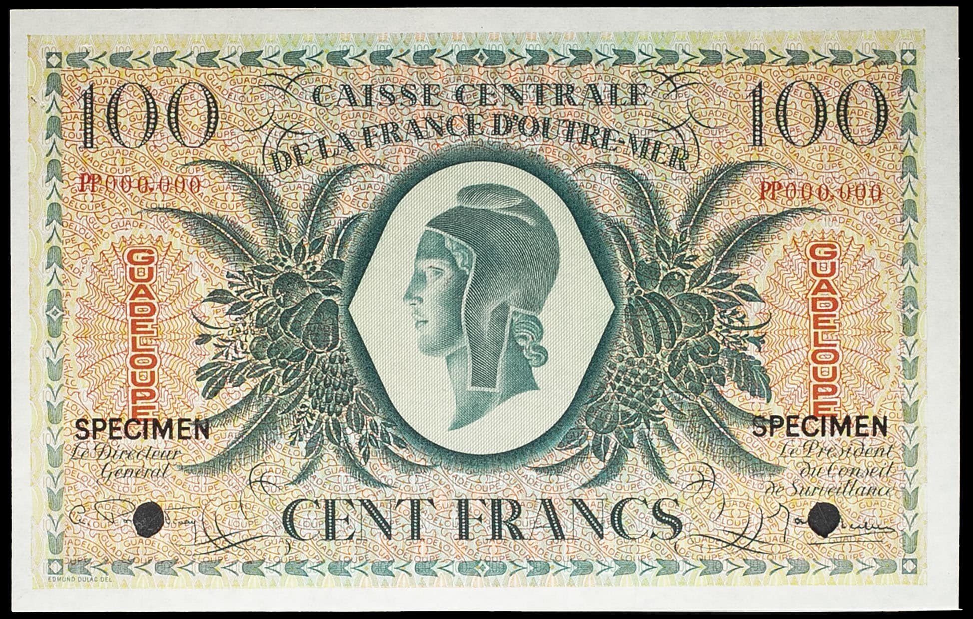 Alphabet PP - numéro 000,000. Exemplaire comportant deux surcharges noires “SPECIMEN” de chaque côté au-dessus de la fonction des signataires ainsi que deux trous par perforation au niveau des signatures. Pedigree : provient de la collection Maurice Muszynski.
