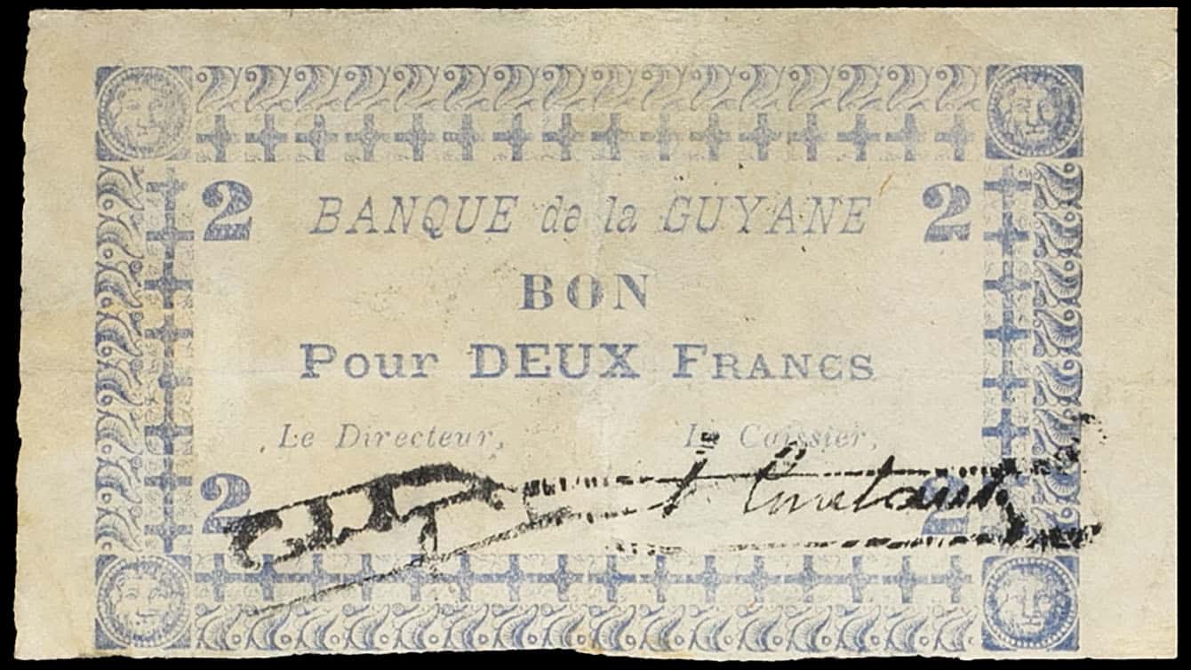 - FRENCH GUIANA Bon de 2 francs - Banque de la Guyane ND (1945).