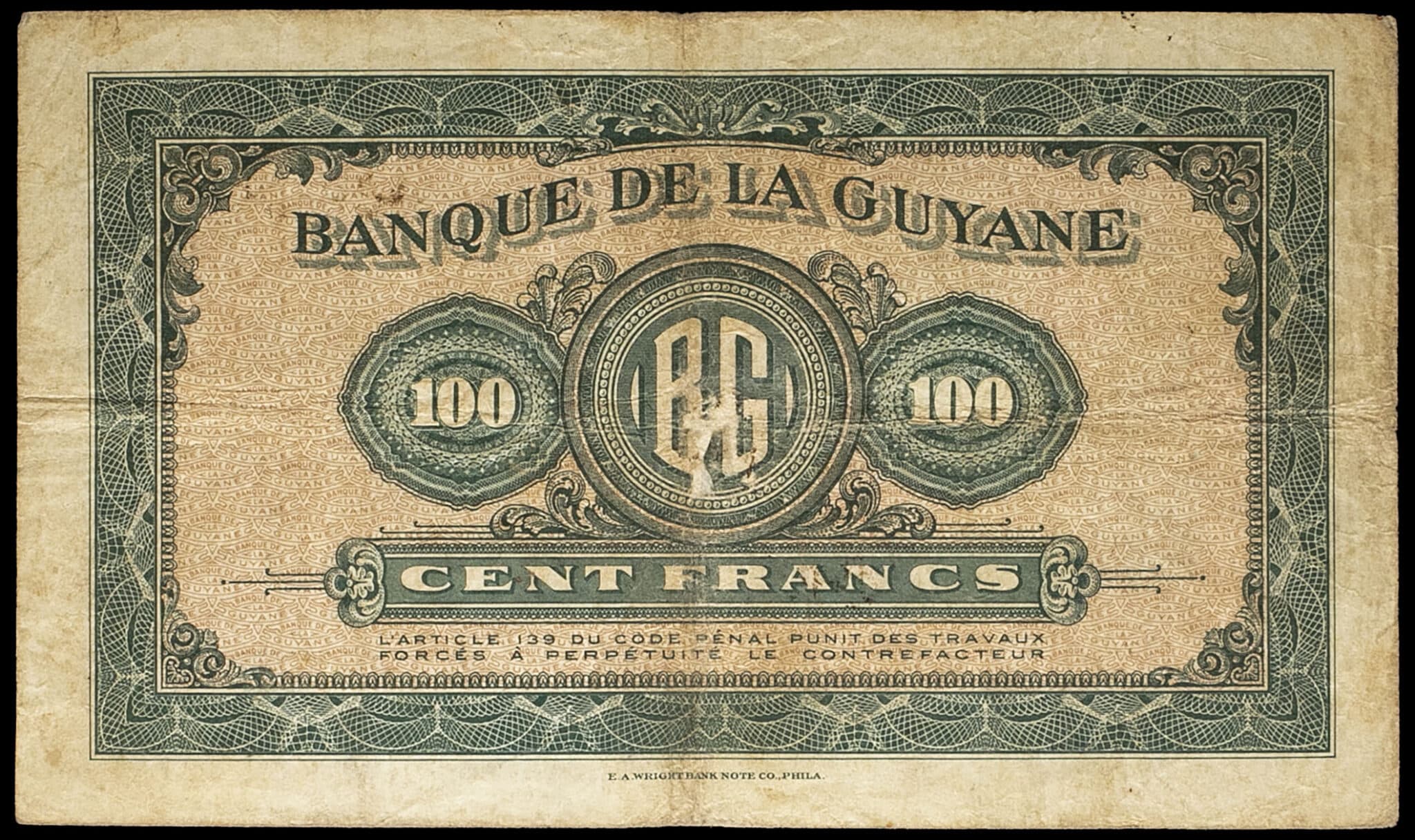 - FRENCH GUIANA 100 francs impression US type “carte” ND (1942).