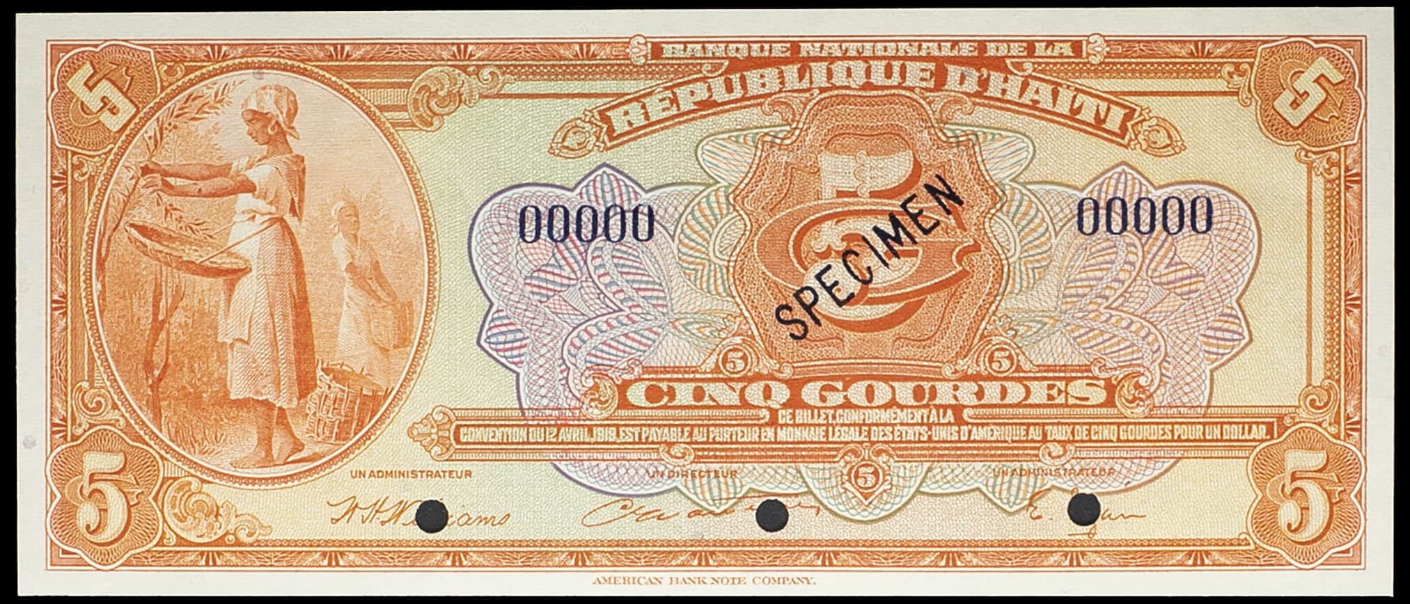 - HAITI 5 gourdes (SPÉCIMEN) ND (1946-1950).