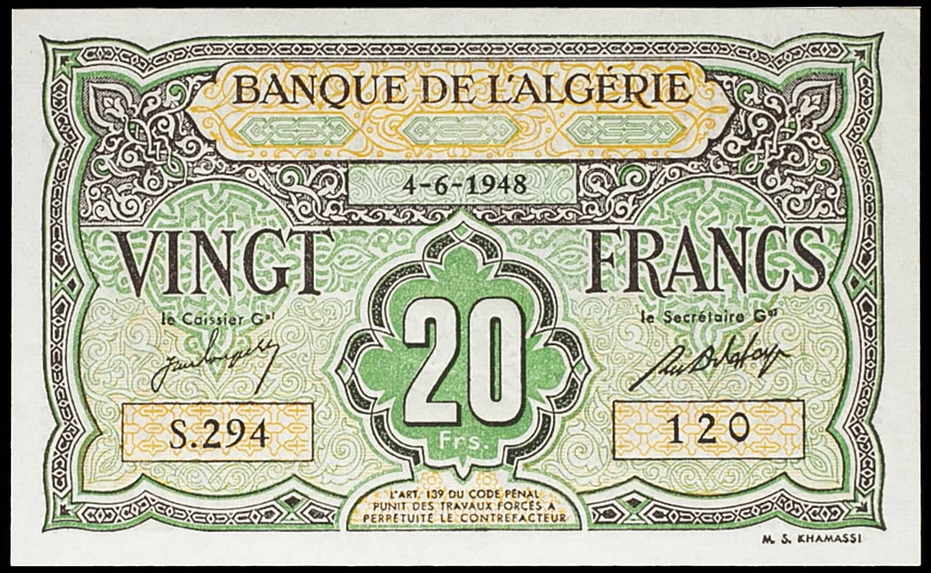 - ALGERIA 20 francs type “Khamassi” 4-6-1948.