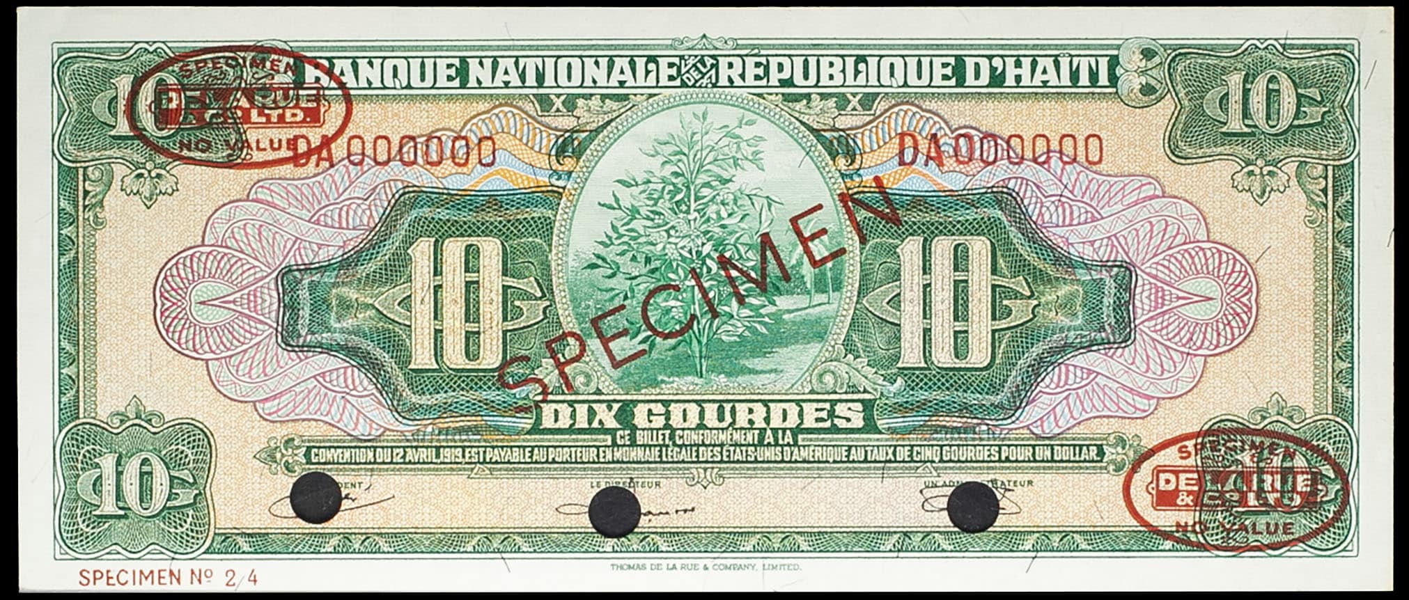 - HAITI 10 gourdes (SPÉCIMEN) ND (1967).