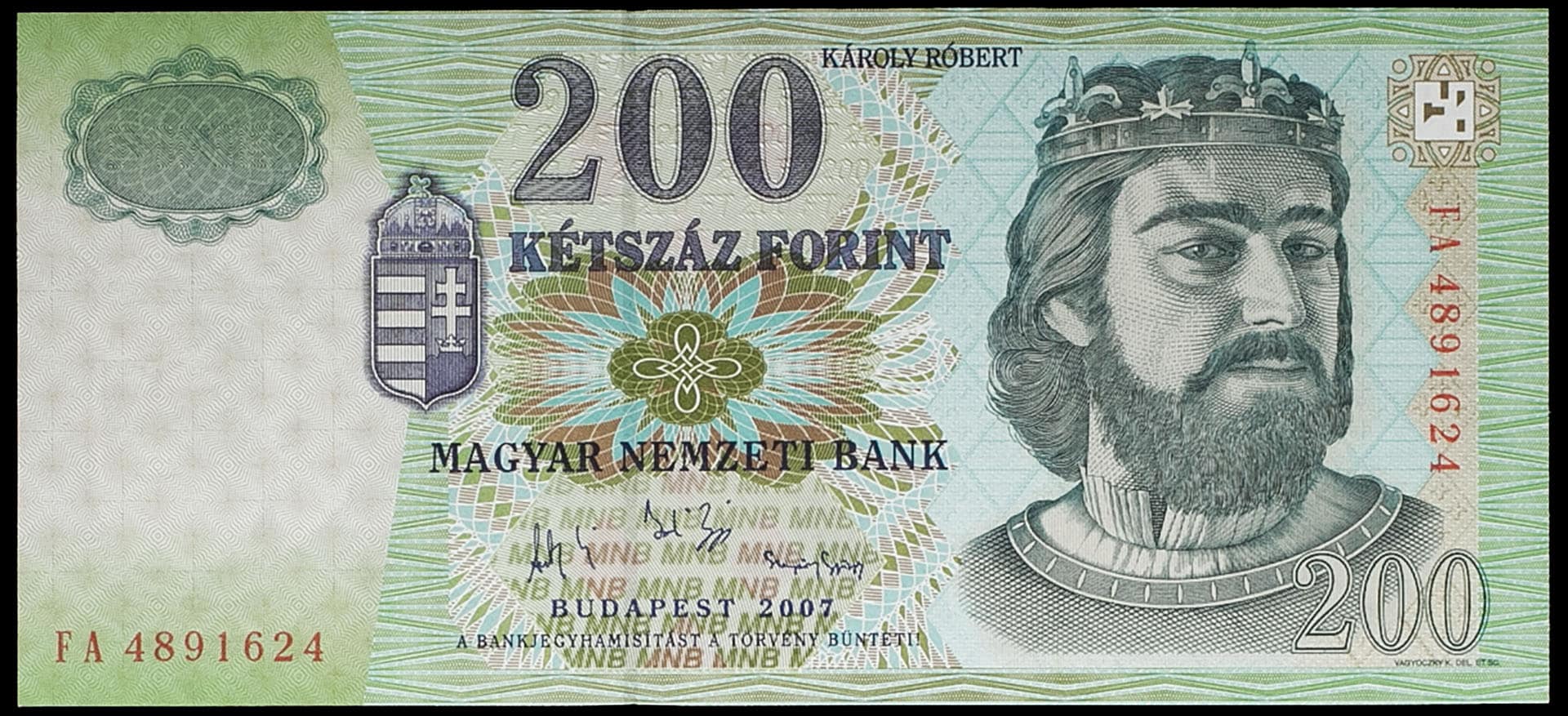 - HUNGARY 200 forint avec le portrait de Charles Ier (Károly Róbert) 2007.