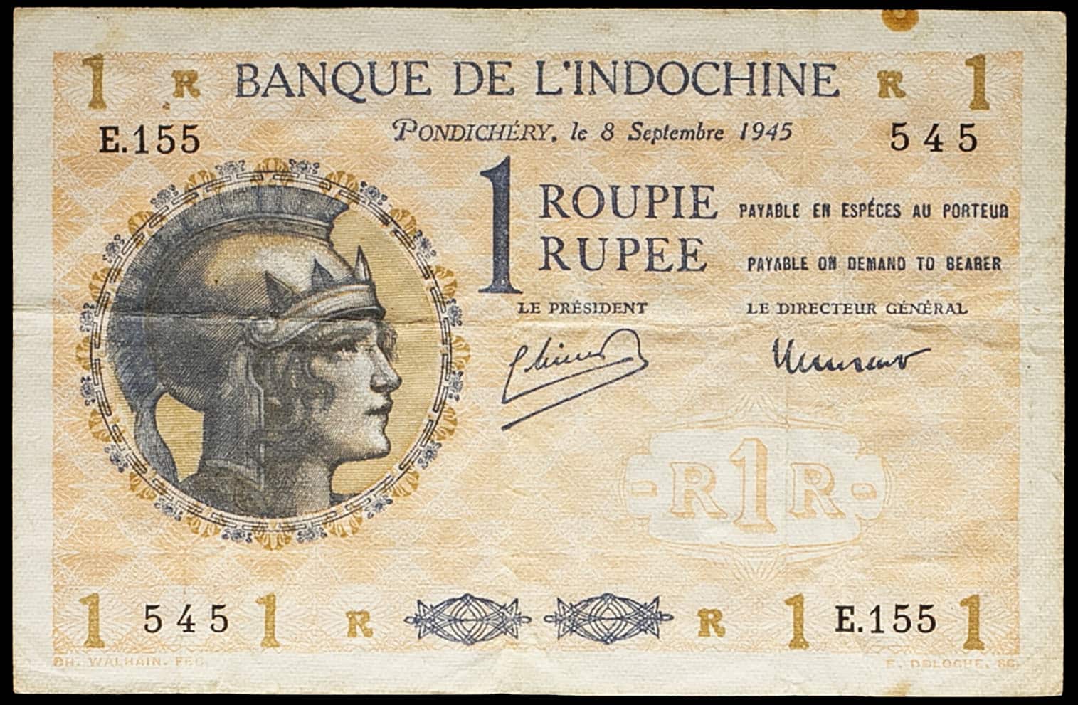 - FRENCH INDIES 1 roupie / 1 rupee - Pondichéry 8 septembre 1945.