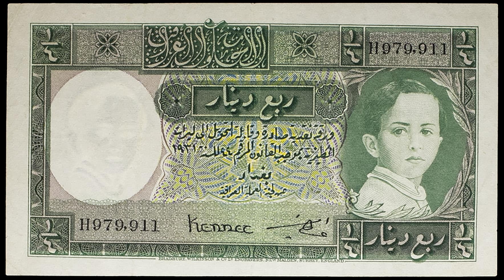 - IRAQ 1/4 dinar avec le portrait du roi Fayçal enfant ND (1942).