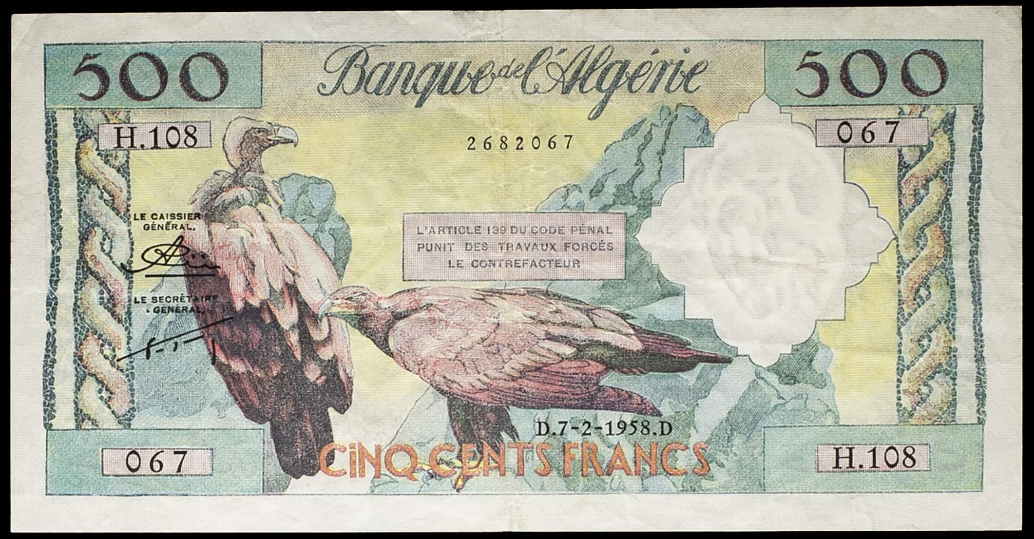 - ALGERIA 500 francs type “vautours” 7-2-1958.