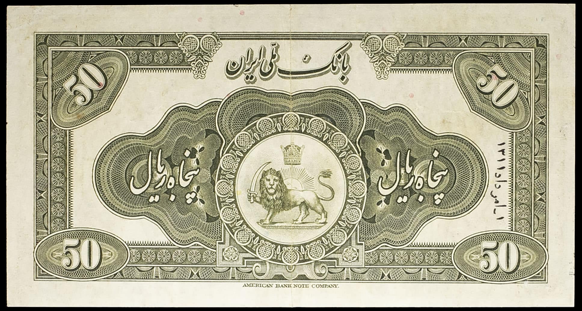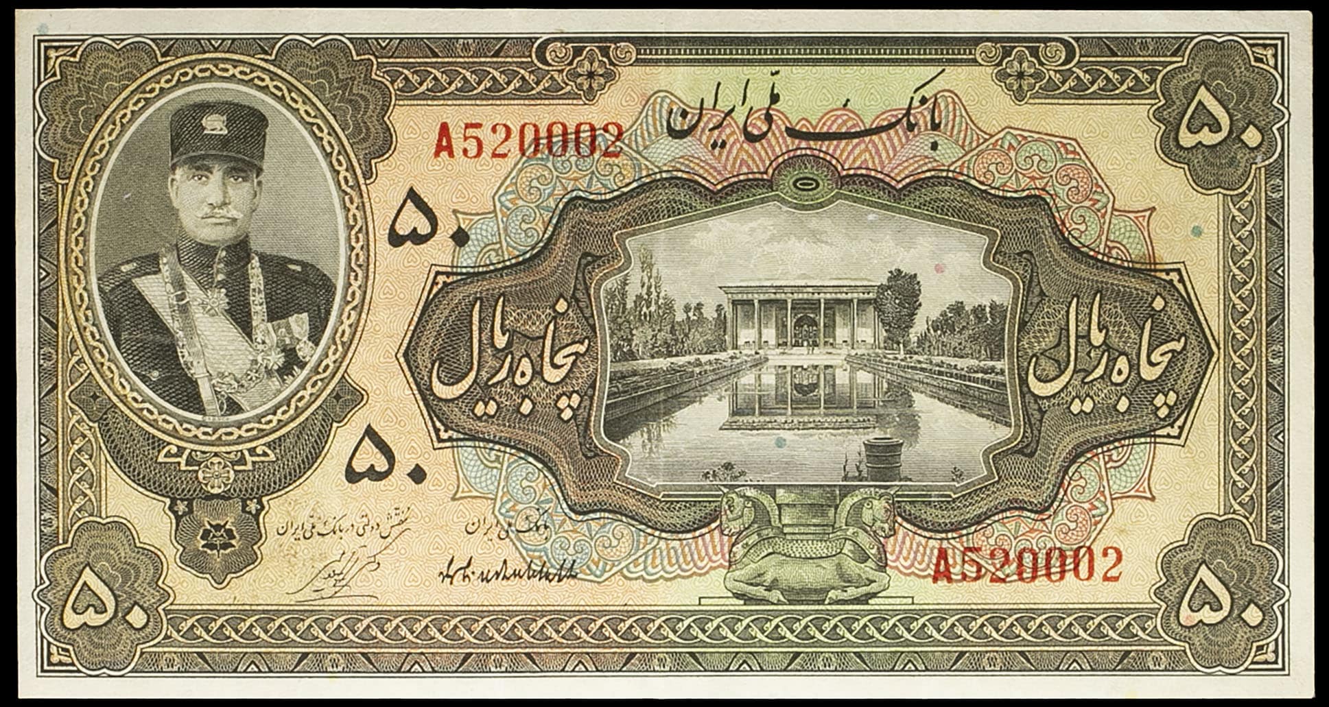 - 50 rials avec le portrait de Reza Shah Pahlavi ND (1932 / SH 1311).