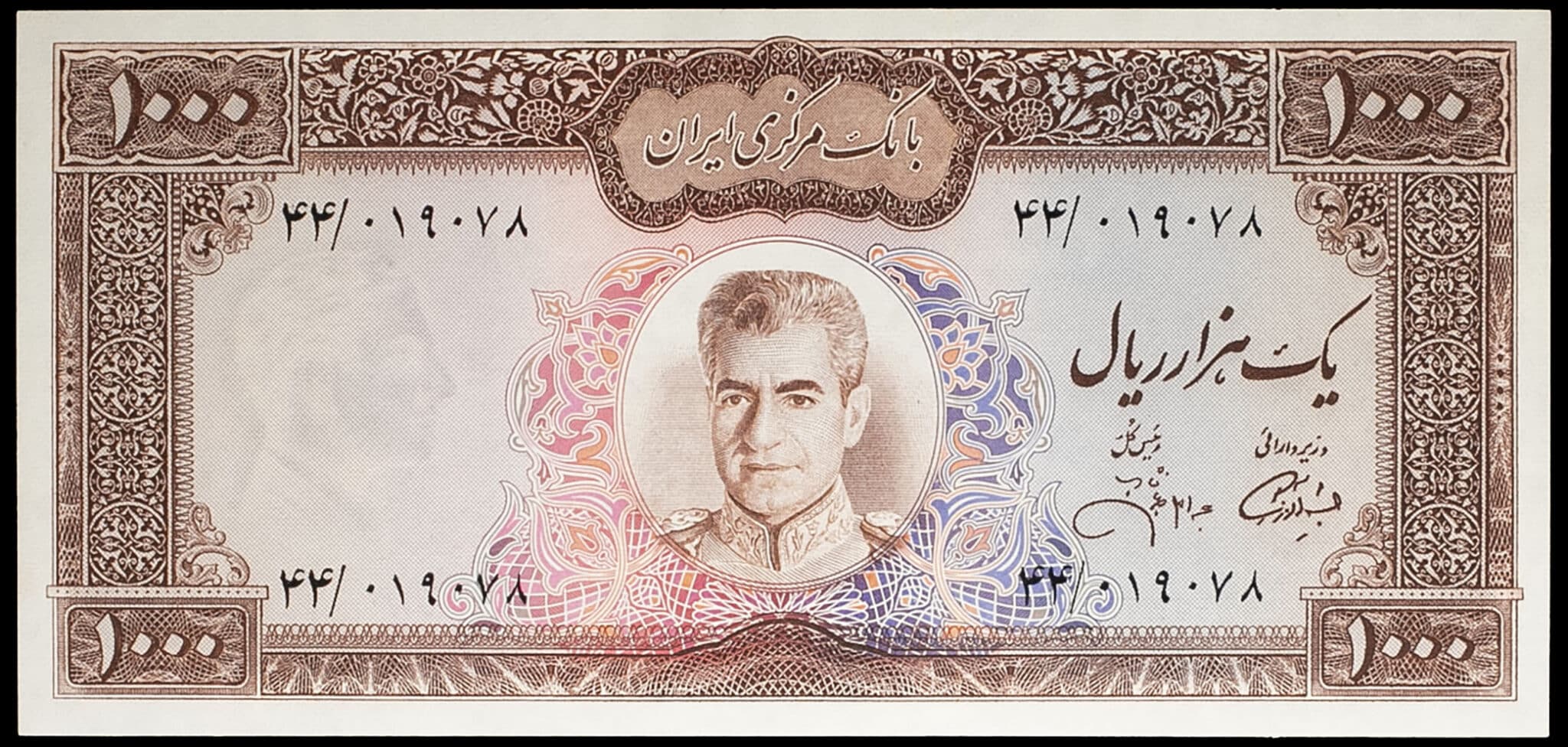 - 1000 rials avec le portrait de Mohammad Reza Pahlavi ND (1971-1973).