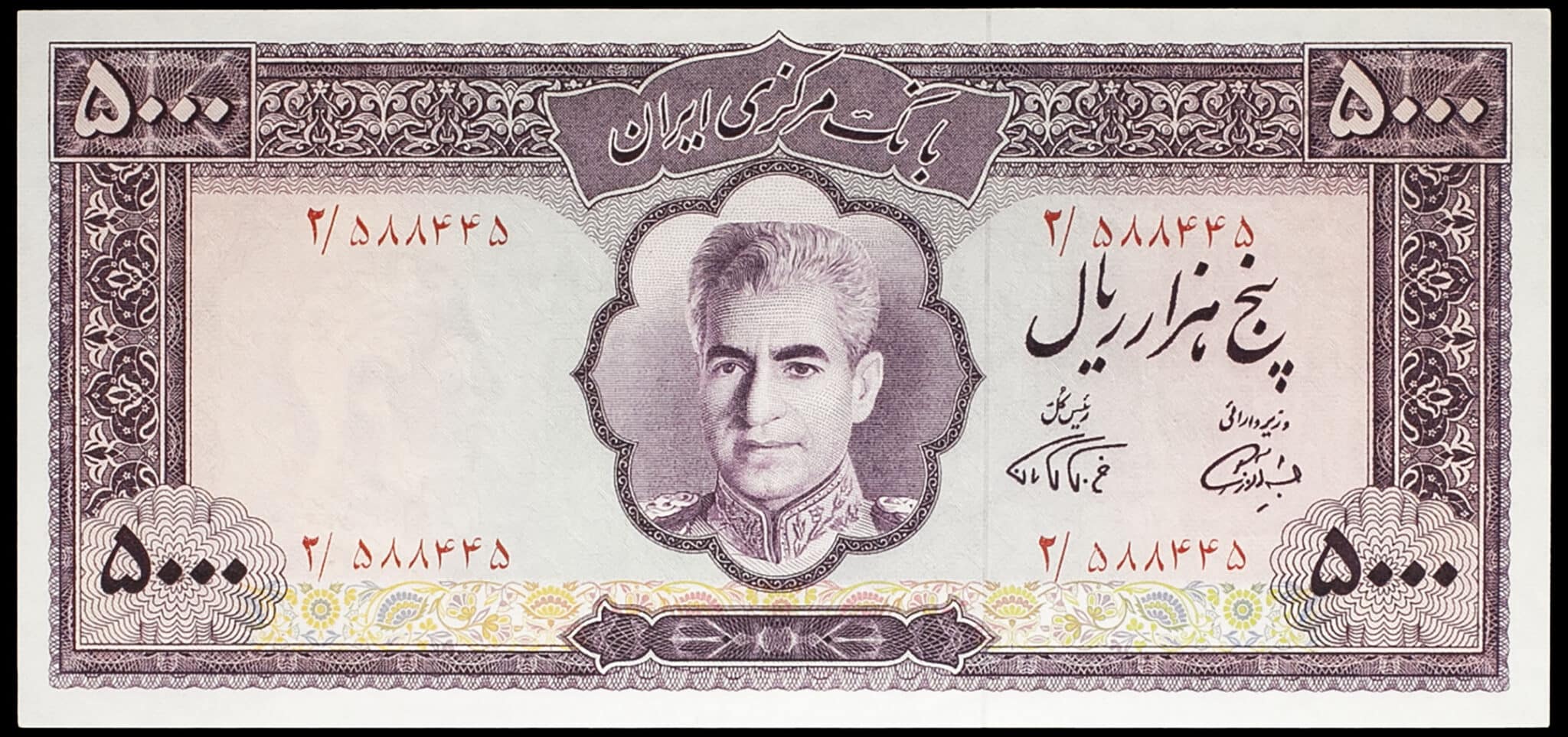 - 5000 rials avec le portrait de Mohammad Reza Pahlavi ND (1971-1972).