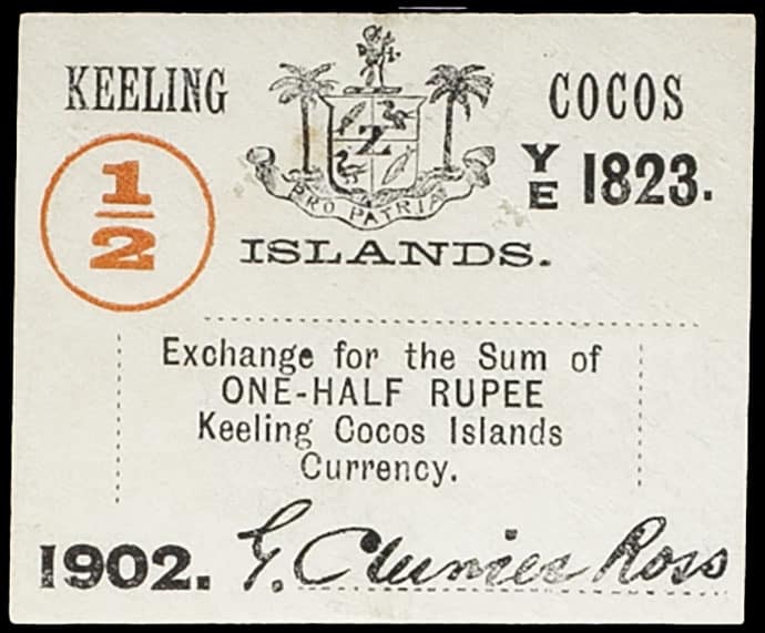 - KEELING COCOS ISLANDS 1/2 rupee 1902.