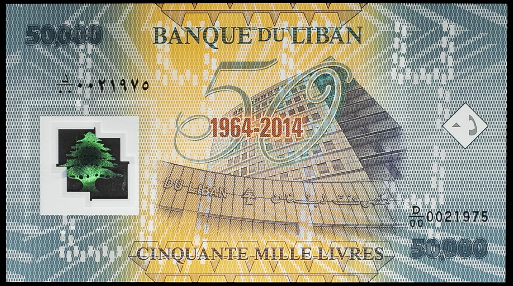 - LEBANON 50 000 livres type commémoratif “50 ans de la Banque du Liban” 13 mars 2014.