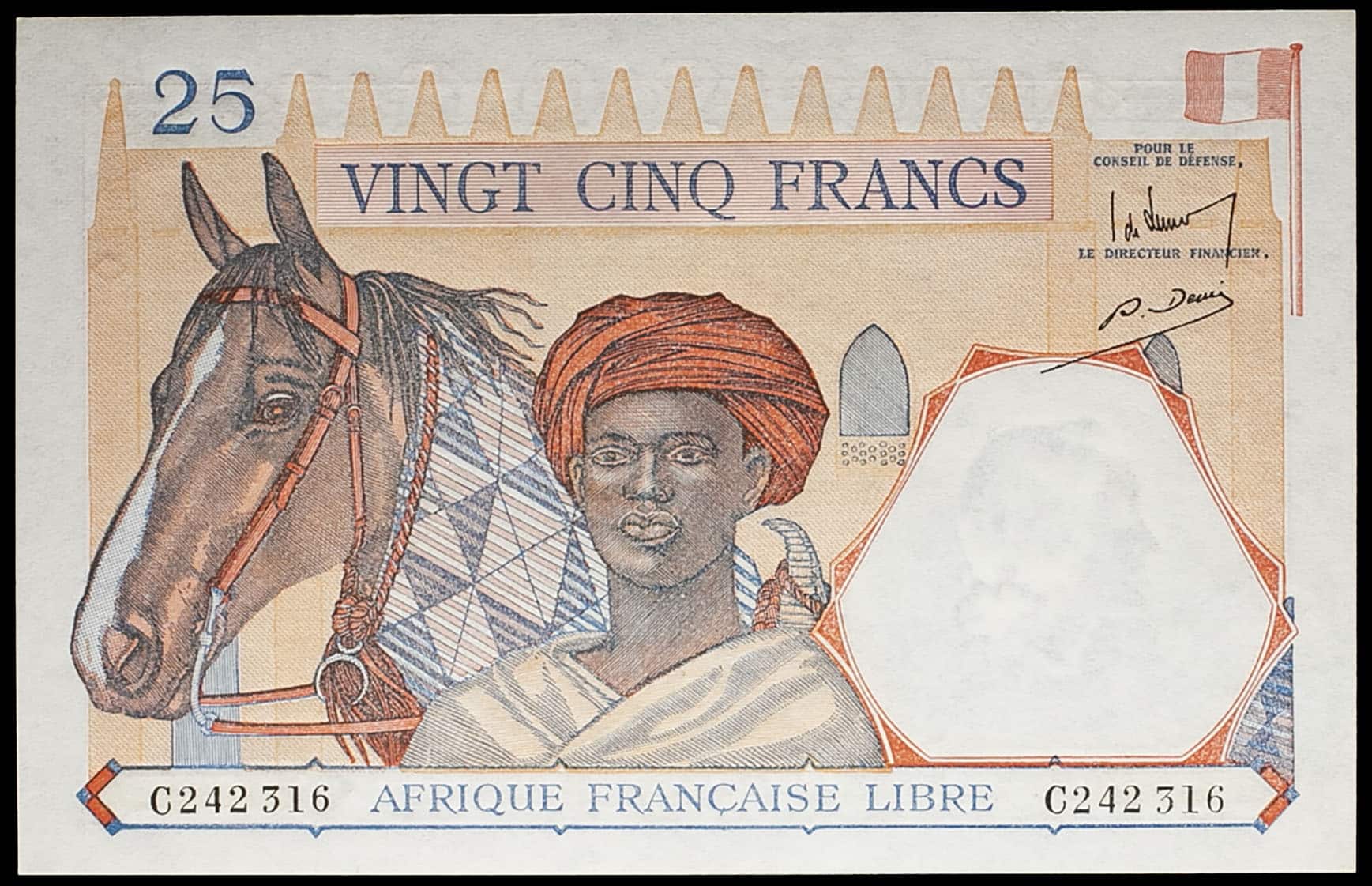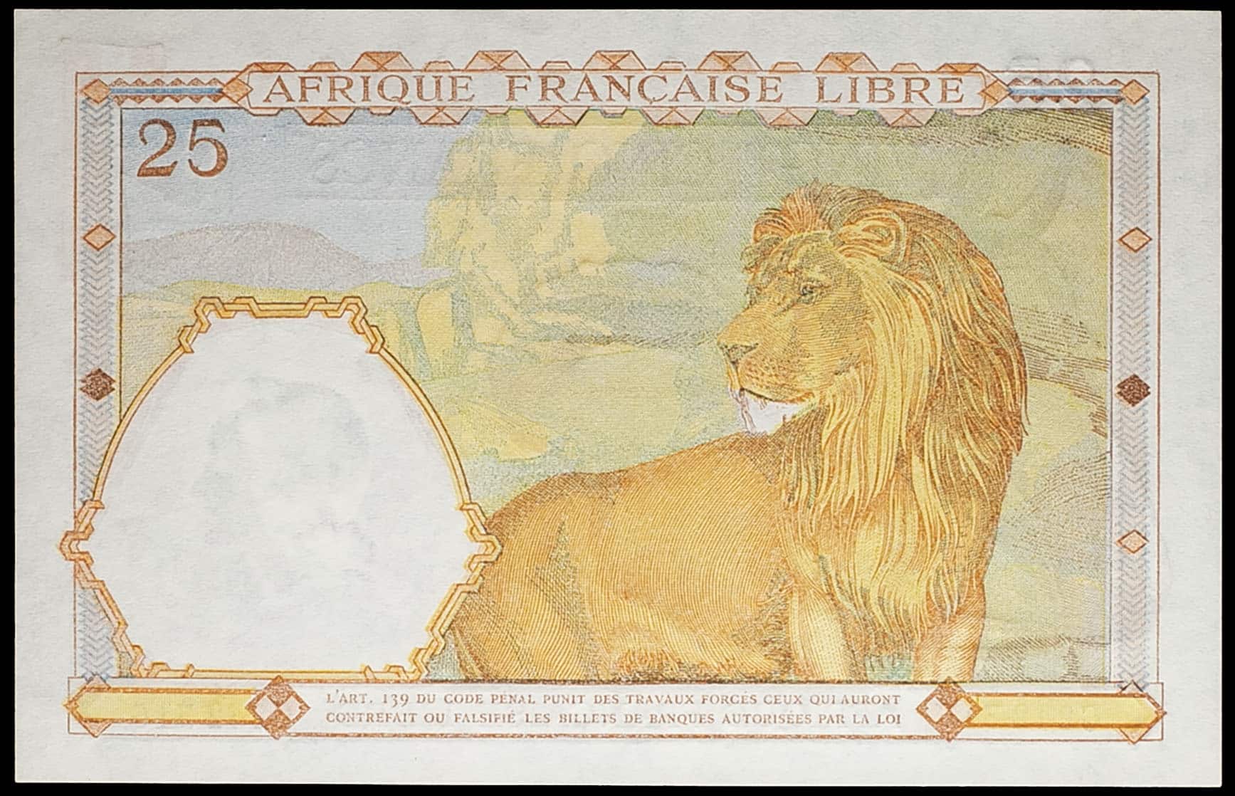 - FRENCH EQUATORIAL AFRICA 25 francs - Afrique Française Libre ND (1943).