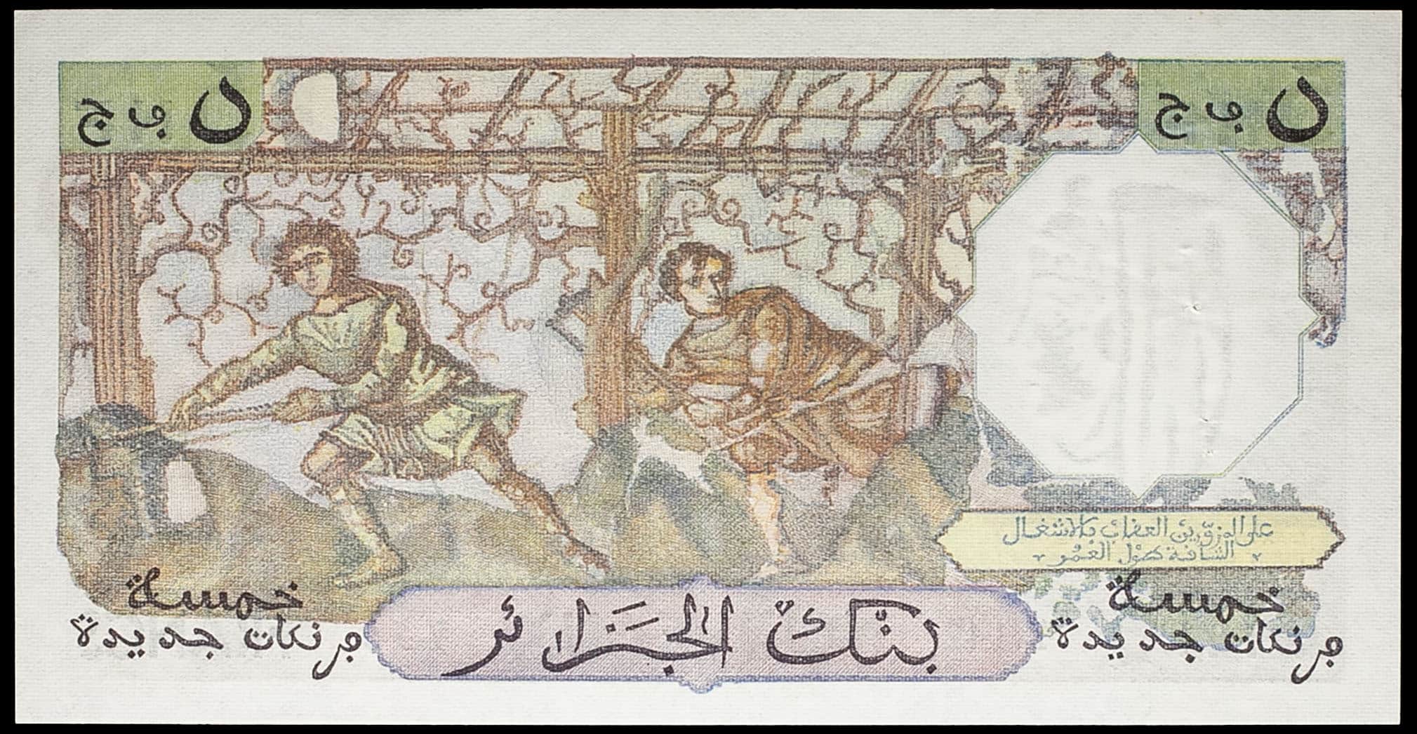 - ALGERIA 5 nouveaux francs type “Bacchus” 31-7-1959.