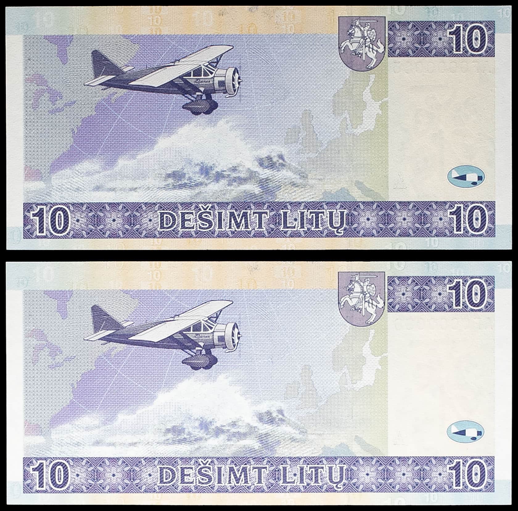 - LITHUANIA Lot (2) - 10 litu avec les portraits de Steponas Darius et Stasys Girėnas, avec petits numéros consécutifs 2001.