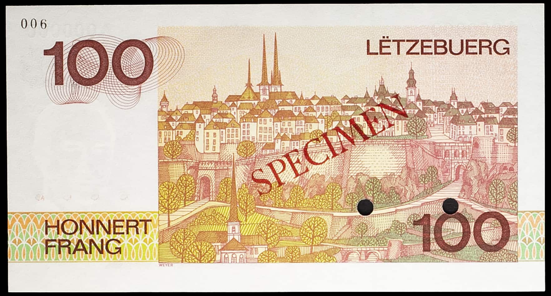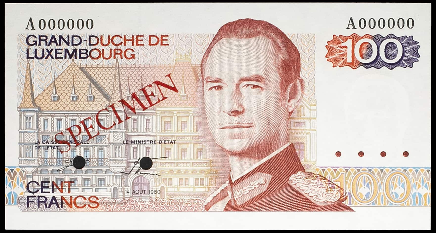 - 100 francs avec le portrait du grand-duc Jean (SPÉCIMEN) 14 août 1980.