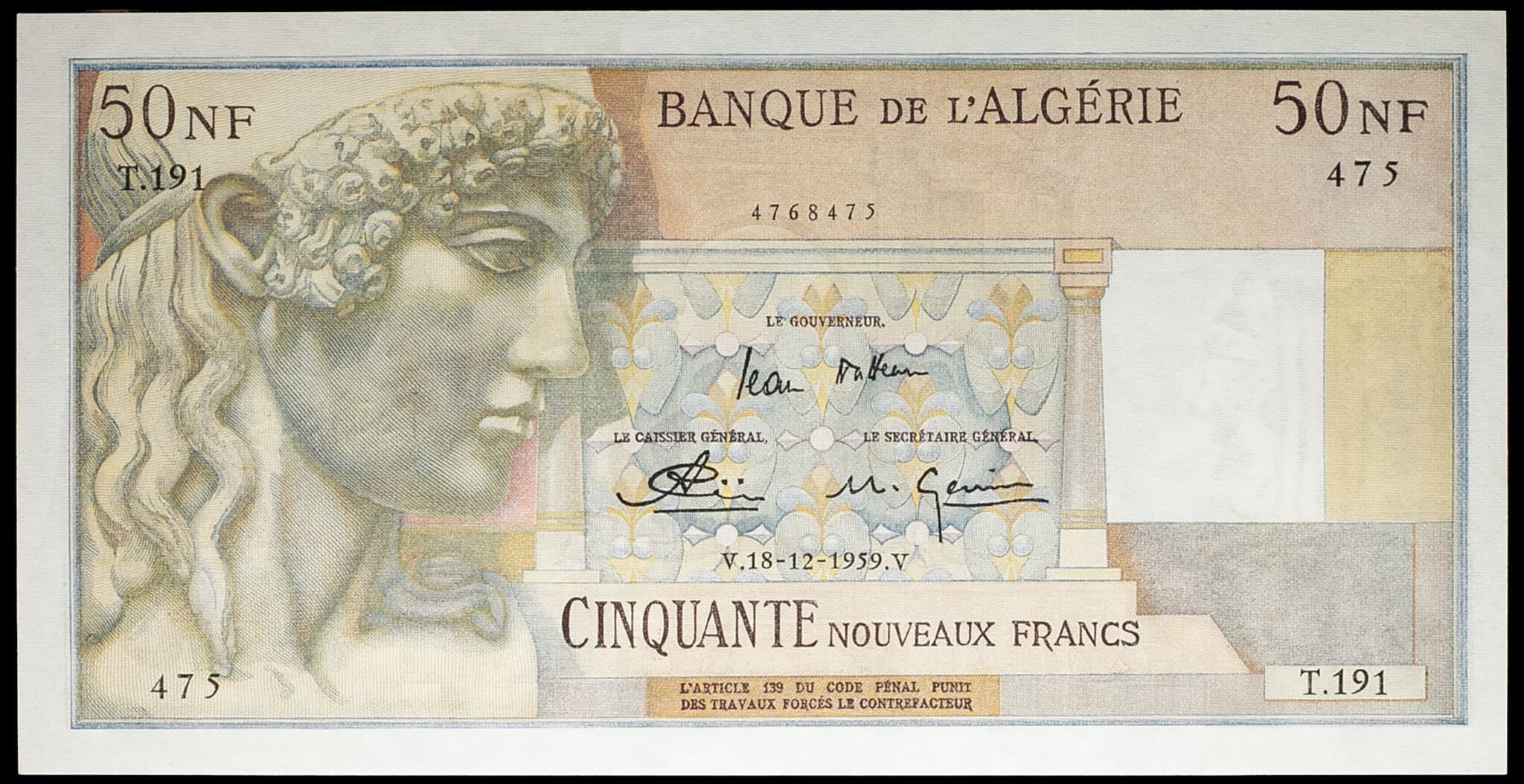 - ALGERIA 50 nouveaux francs type “Apollon” 18-12-1959.