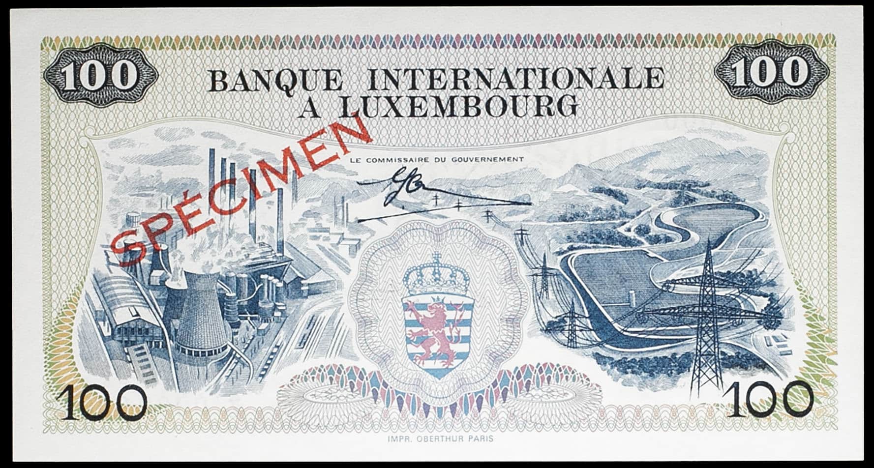 - 100 francs avec le portrait du grand-duc Jean (SPÉCIMEN) - Banque Internationale à Luxembourg 1er mai 1968.