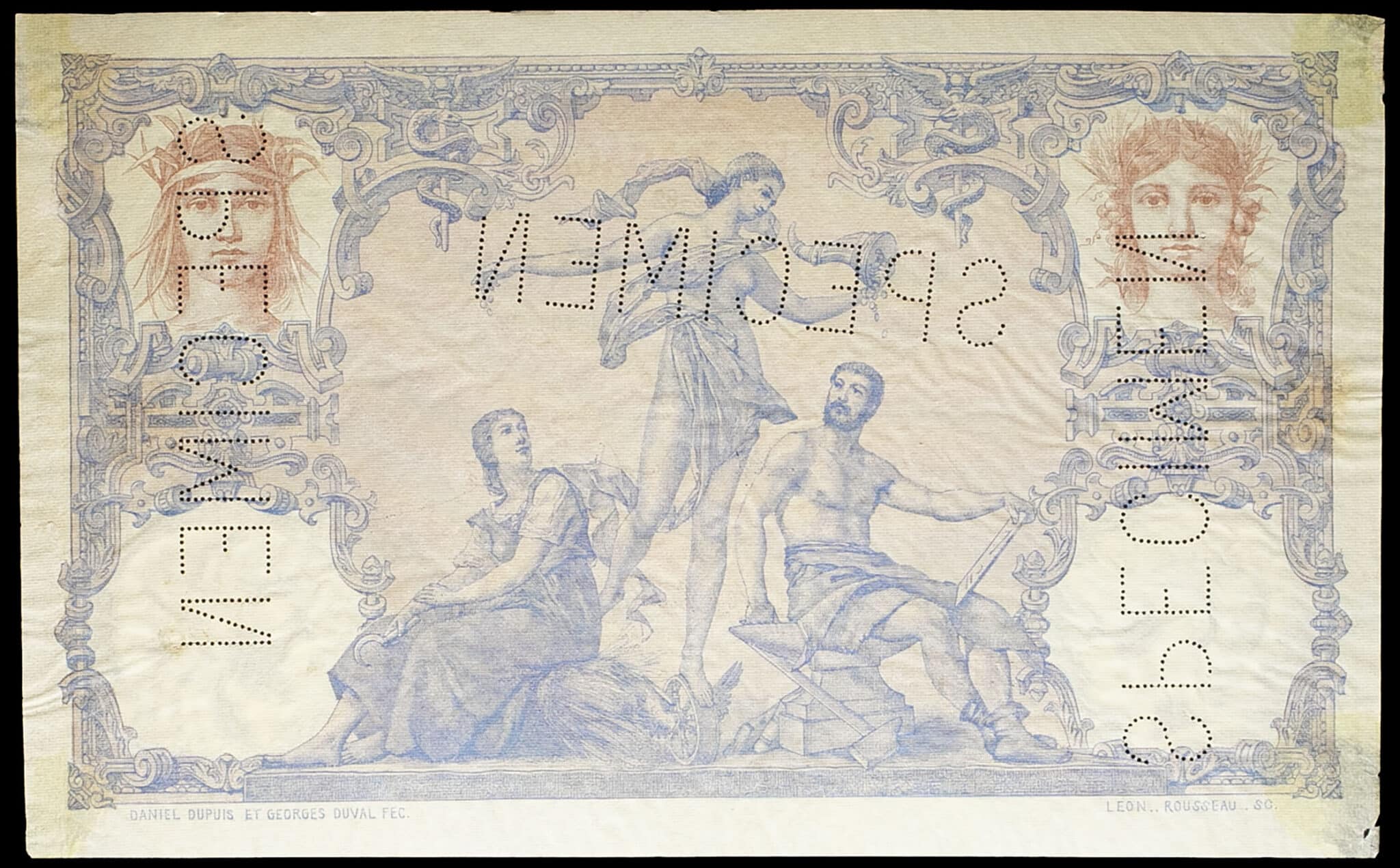 - 100 francs type “bleu et rose” surchargé (SPÉCIMEN) 27-12-1892.