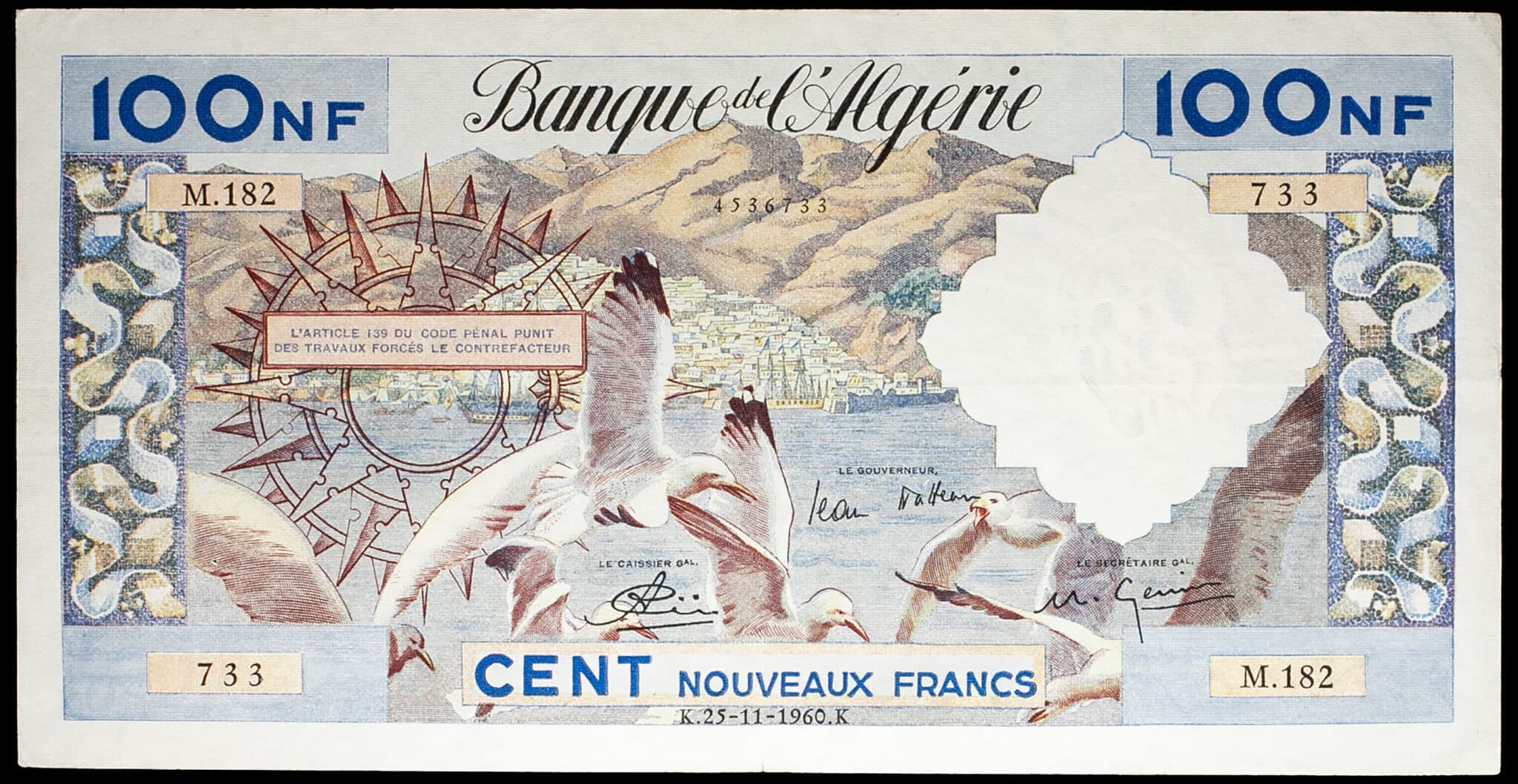 - ALGERIA 100 nouveaux francs type “mouettes” 25-11-1960.