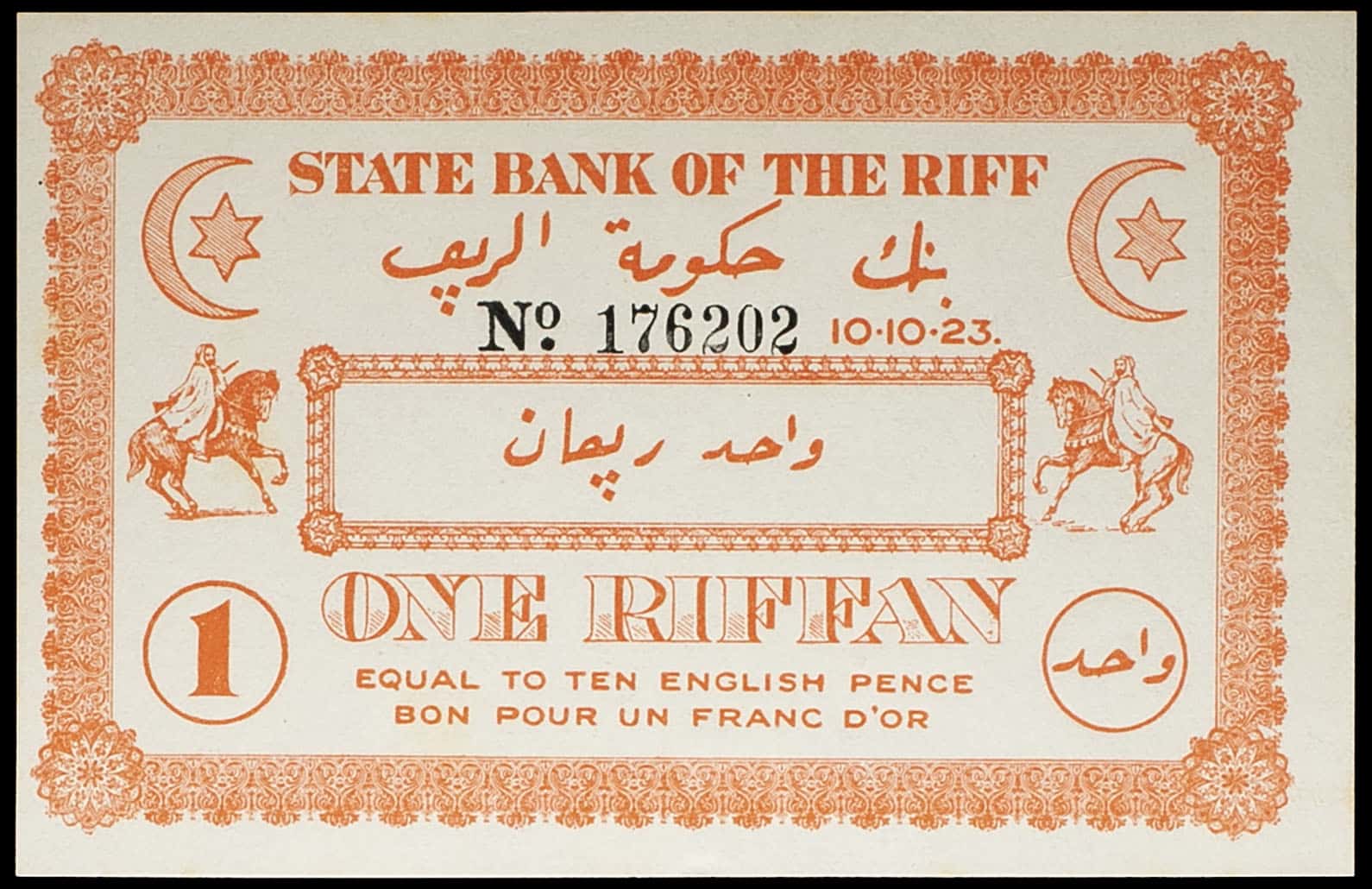 - MOROCCO 1 riffan - Banque d’État du Rif (State Bank of the Riff) 10.10.1923.