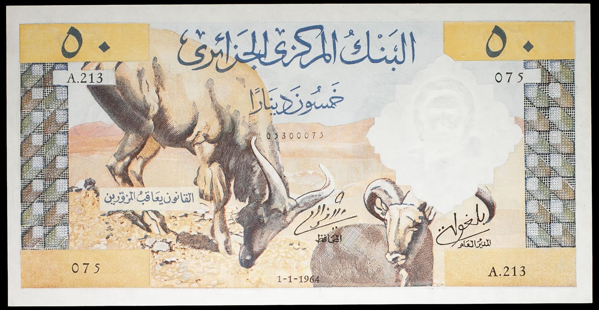- ALGERIA 50 dinars type “mouflons” 1-1-1964.