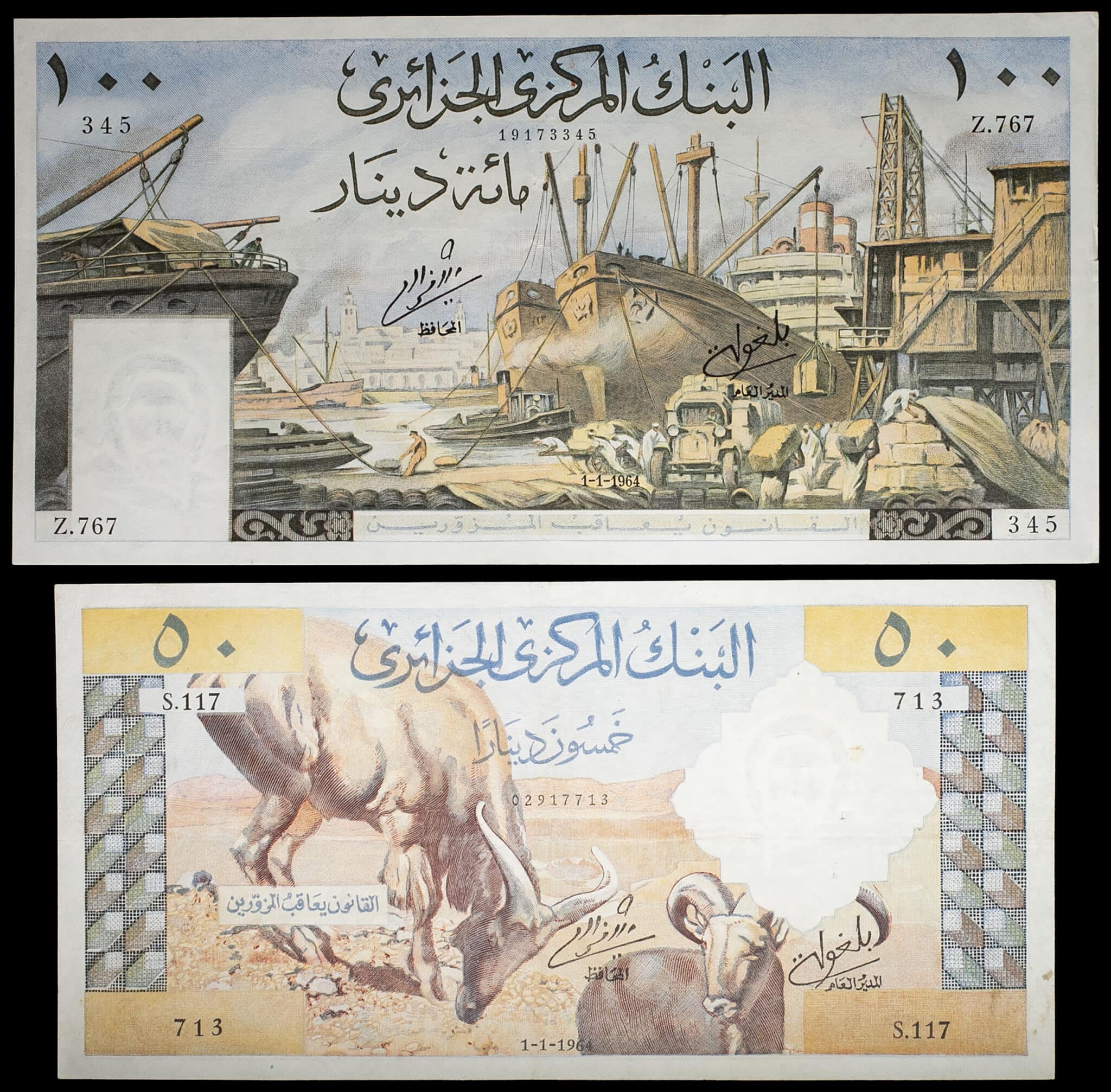 - ALGERIA Lot (2) - 50 et 100 dinars 1-1-1964.