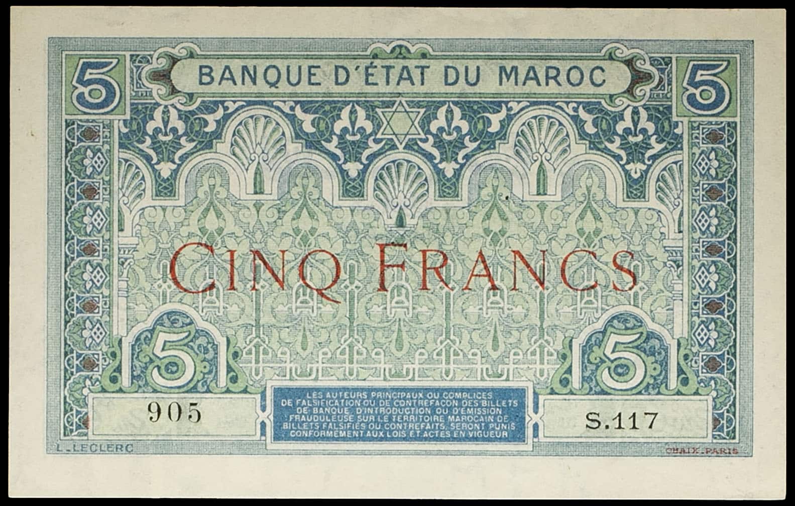 Alphabet S.117 - numéro 905. Signatures : El Mokri / Gaurand / Dervillé. Type rare et recherché ! Seuls deux exemplaires sont référencés dans une qualité supérieure dans la base de population PMG à ce jour ! (1x PMG 64 EPQ : Top Pop). Notons qu’un exemplaire similaire en état Pr. SPL avec alphabet S.117 - numéro 907 avait réalisé un prix de 613 EUR frais inclus lors de la Live-Auction CGB de février 2022.