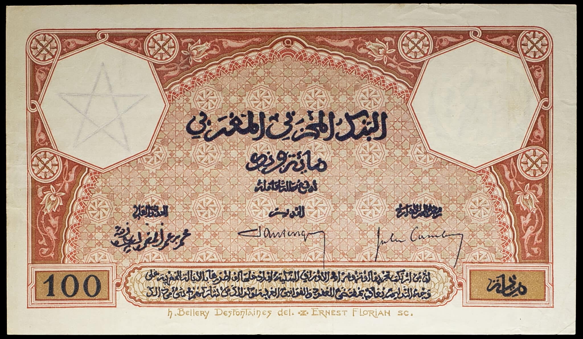 - MOROCCO 100 francs 1-4-1926.