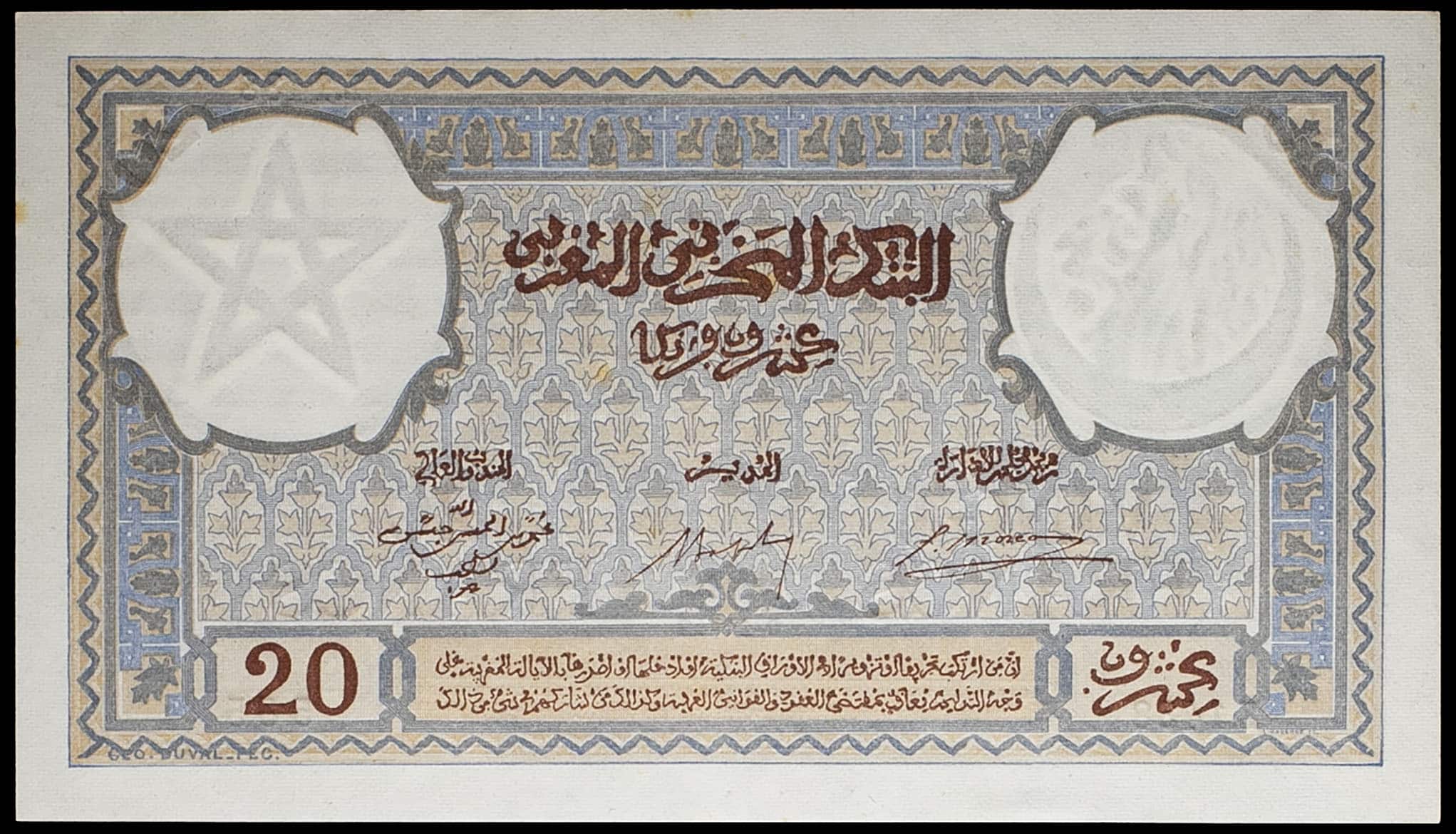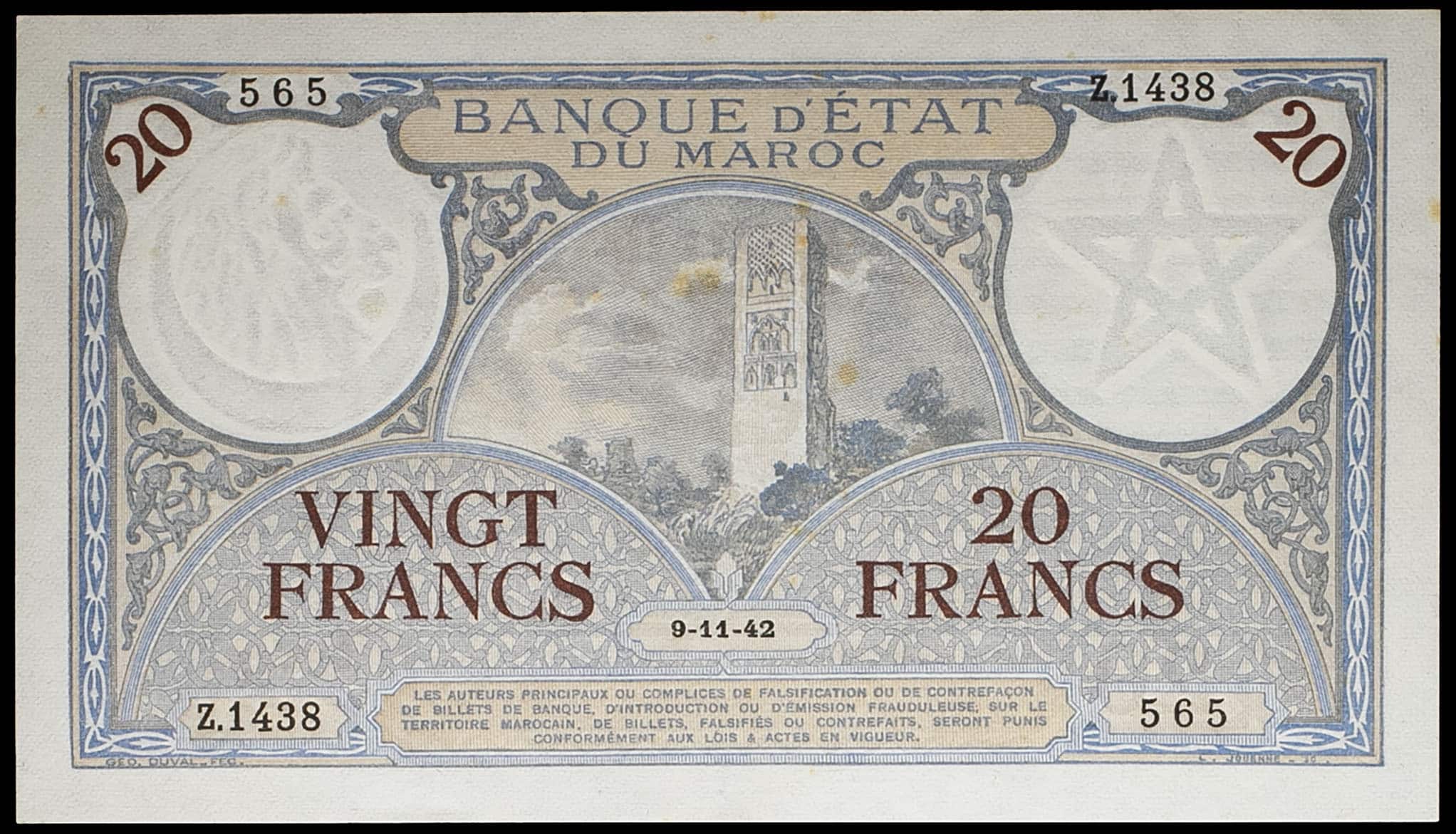 - MOROCCO 20 francs, type modifié 9-11-1942.