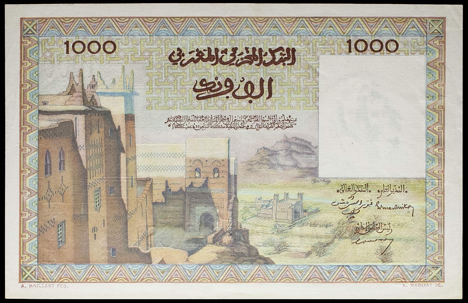 - MOROCCO 1000 francs type “vue de Marrakech” 10-12-1952.