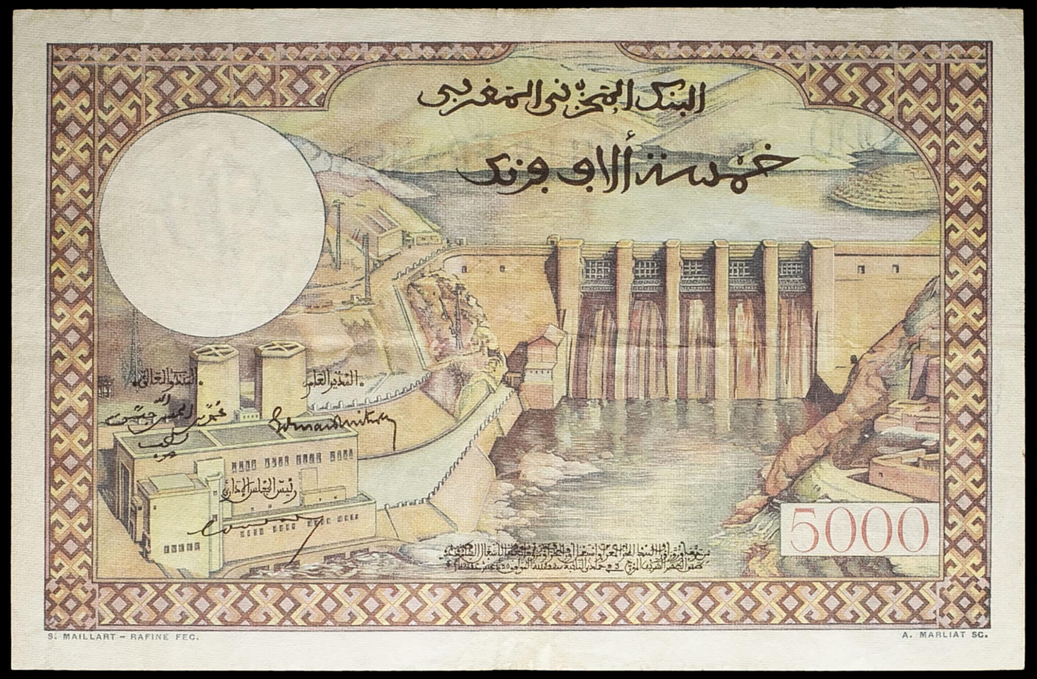 - MOROCCO 5000 francs type “vue de Fès” 23-7-1953.