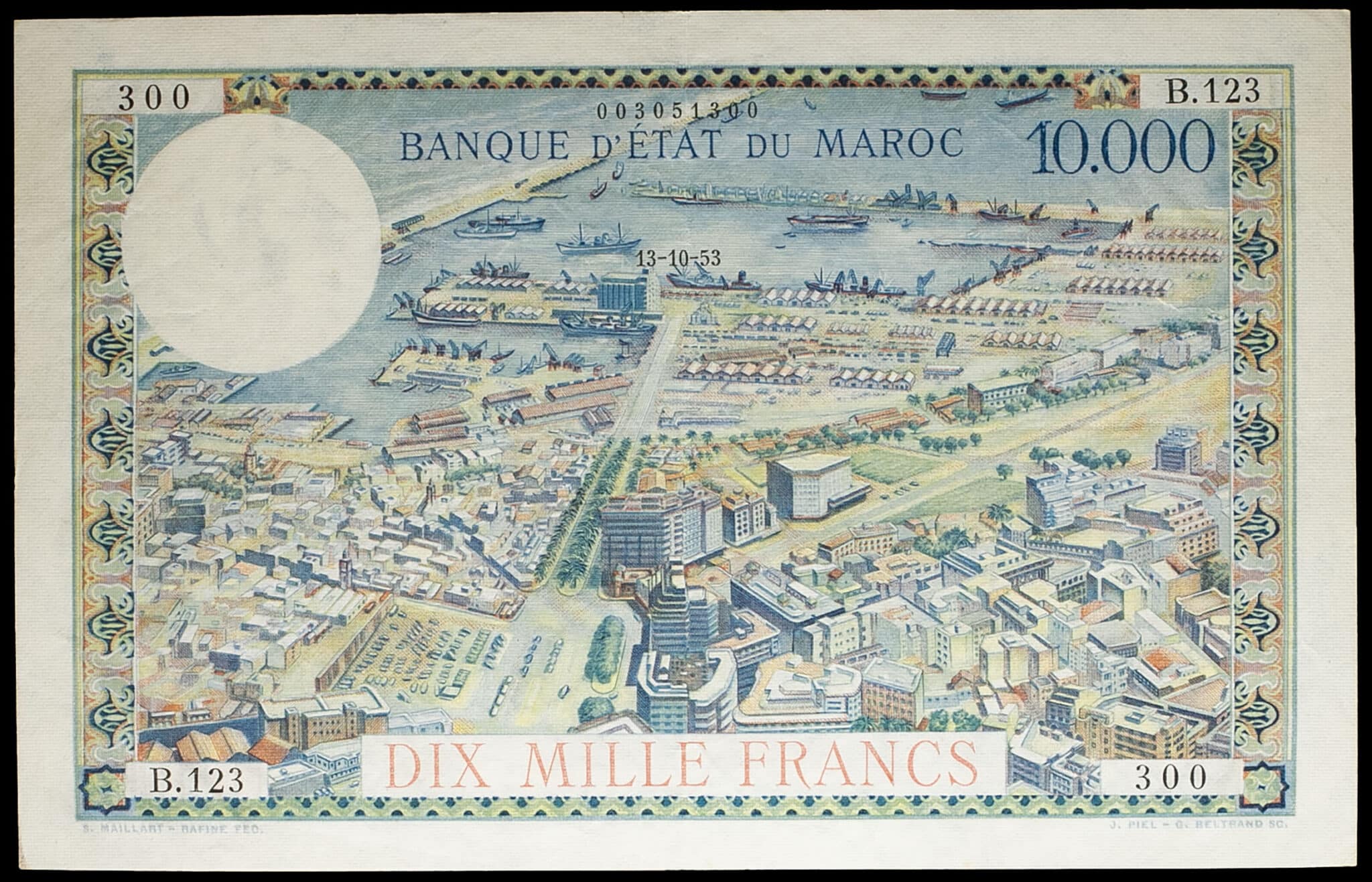 - MOROCCO 10 000 francs type “vue de Casablanca” 13-10-1953.