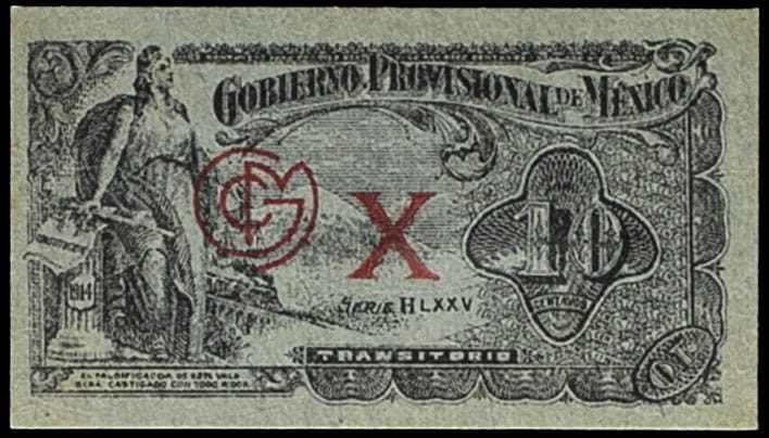 - MEXICO Gouvernement provisoire, bon de 10 centavos type “transitoire” 1914.