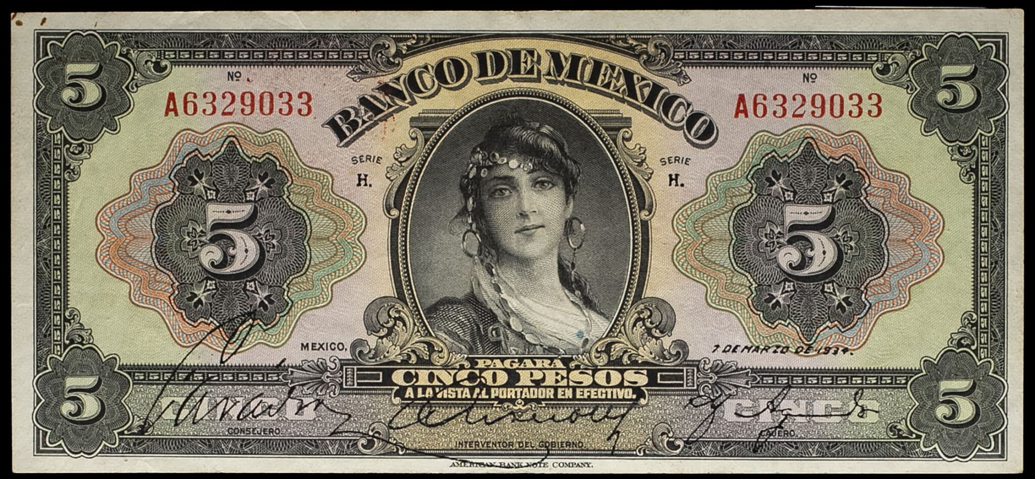 - MEXICO 5 pesos 7 mars 1934.