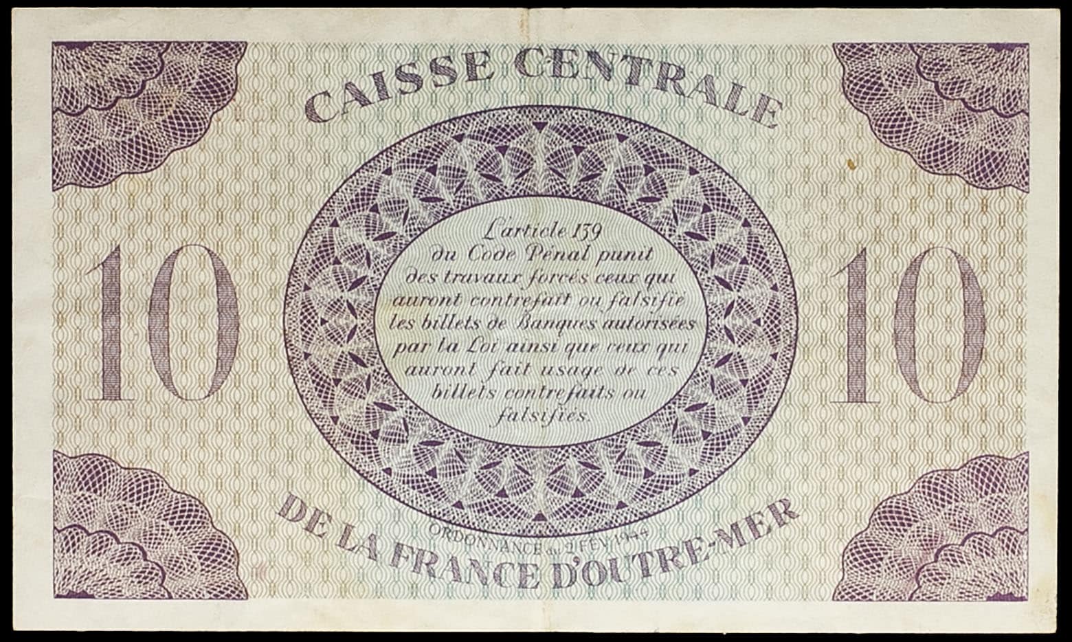 - FRENCH EQUATORIAL AFRICA 10 francs type “Marianne” dit “Edmond Dulac” avec alphabet inédit "FW" 2 février 1944 (31 mai 1946).