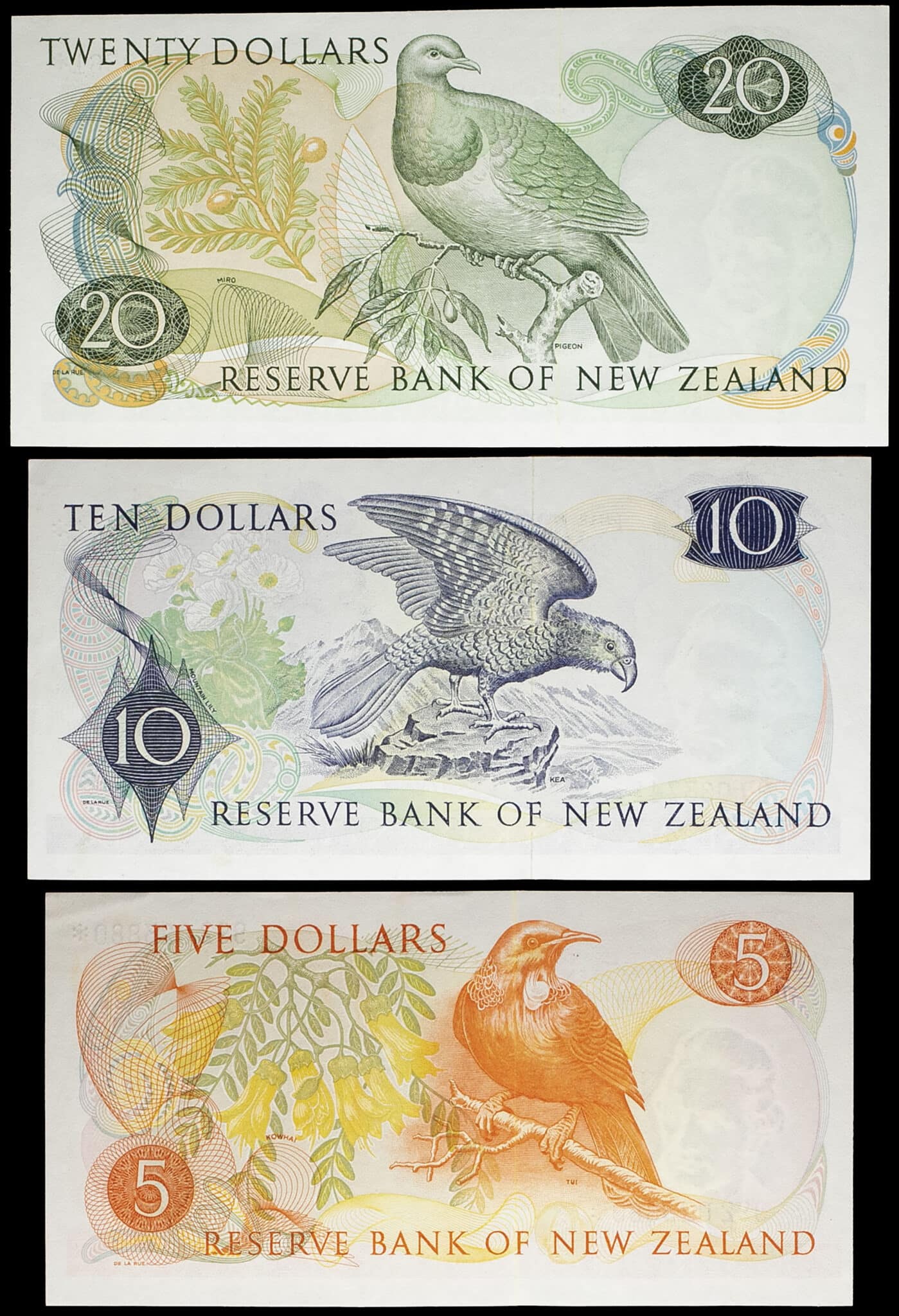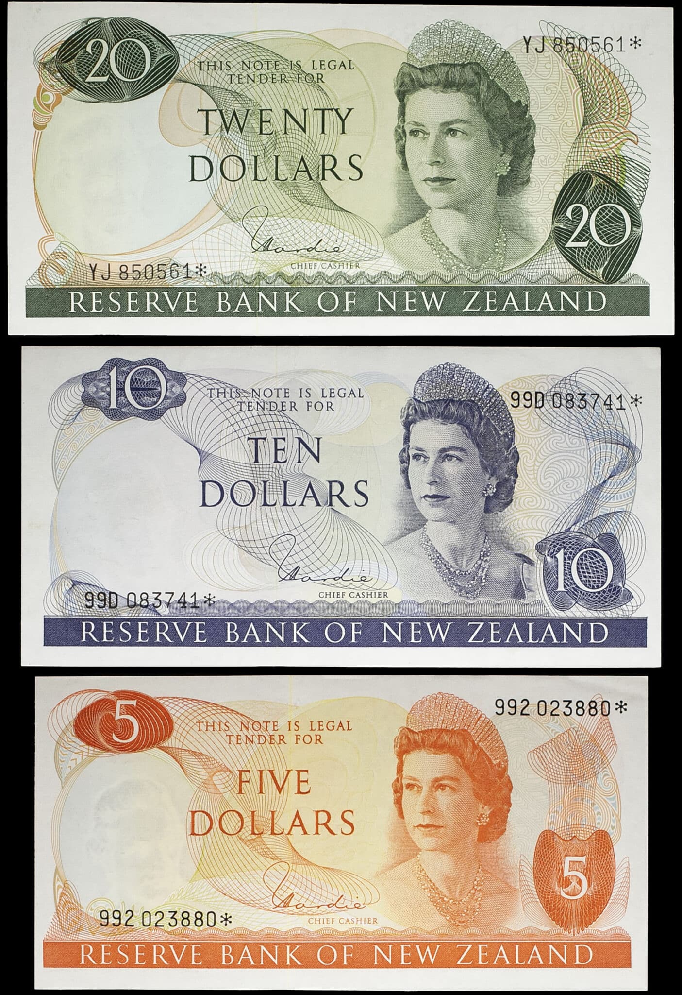 - NEW ZEALAND Lot (3) - 5, 10 et 20 dollars avec le portrait de la reine Élisabeth II ND (1977-1981).