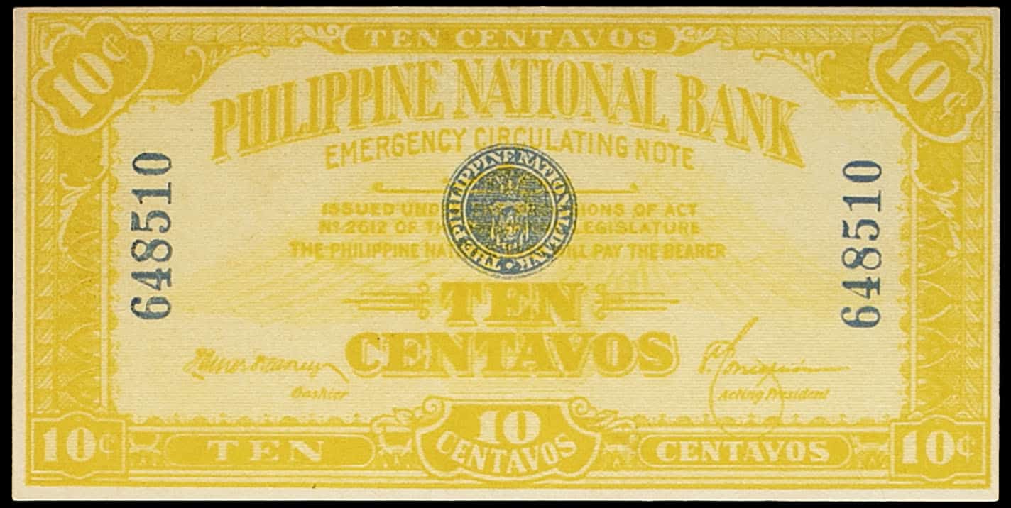 - 10 centavos type “Émission d’urgence (Emergency issue)” 20 novembre 1917.