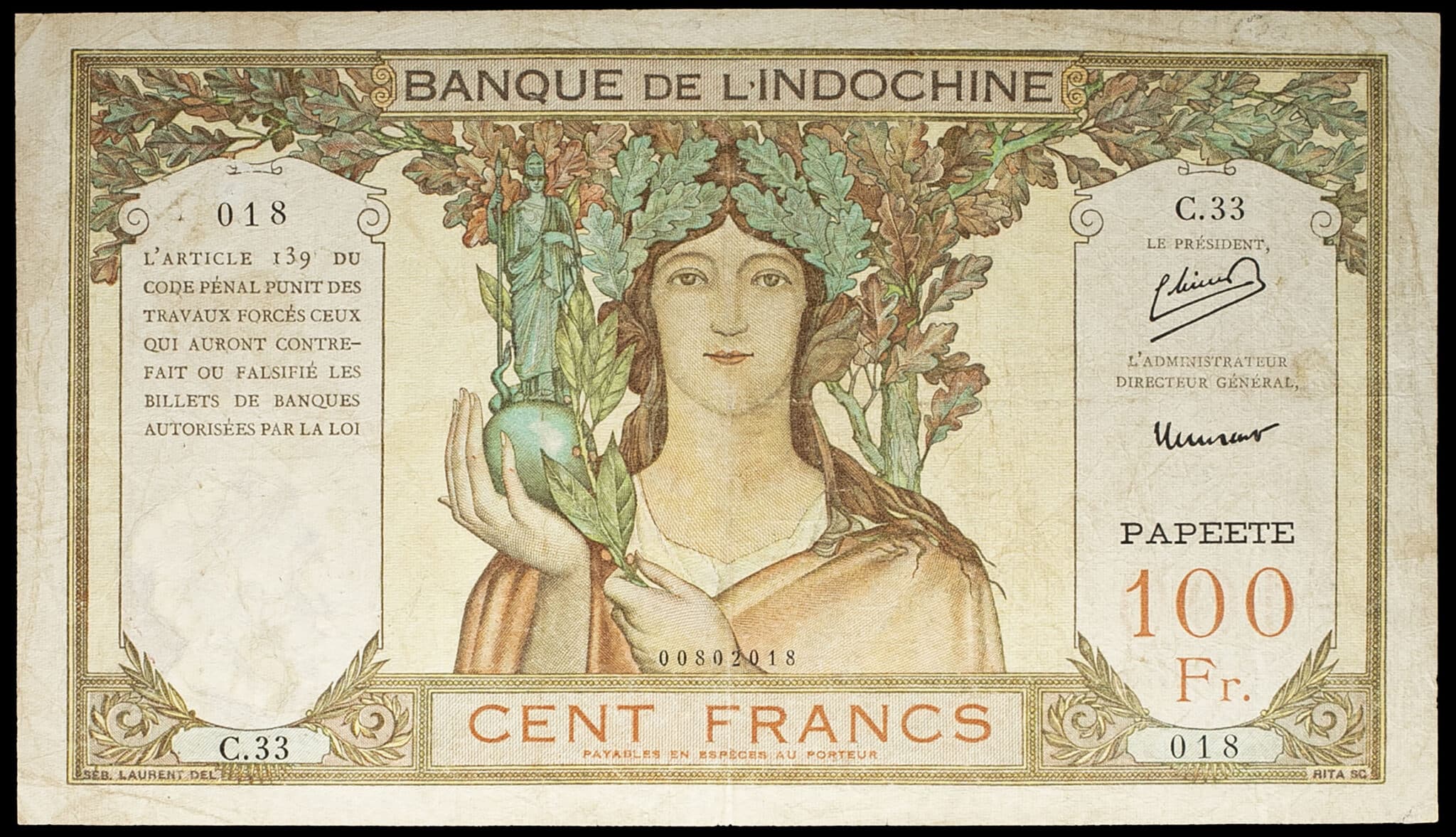 Alphabet C.33 - numéro 018. Signatures : Minost / Laurent. Type recherché, seuls douze exemplaires sont référencés dans la base de population PMG à ce jour !