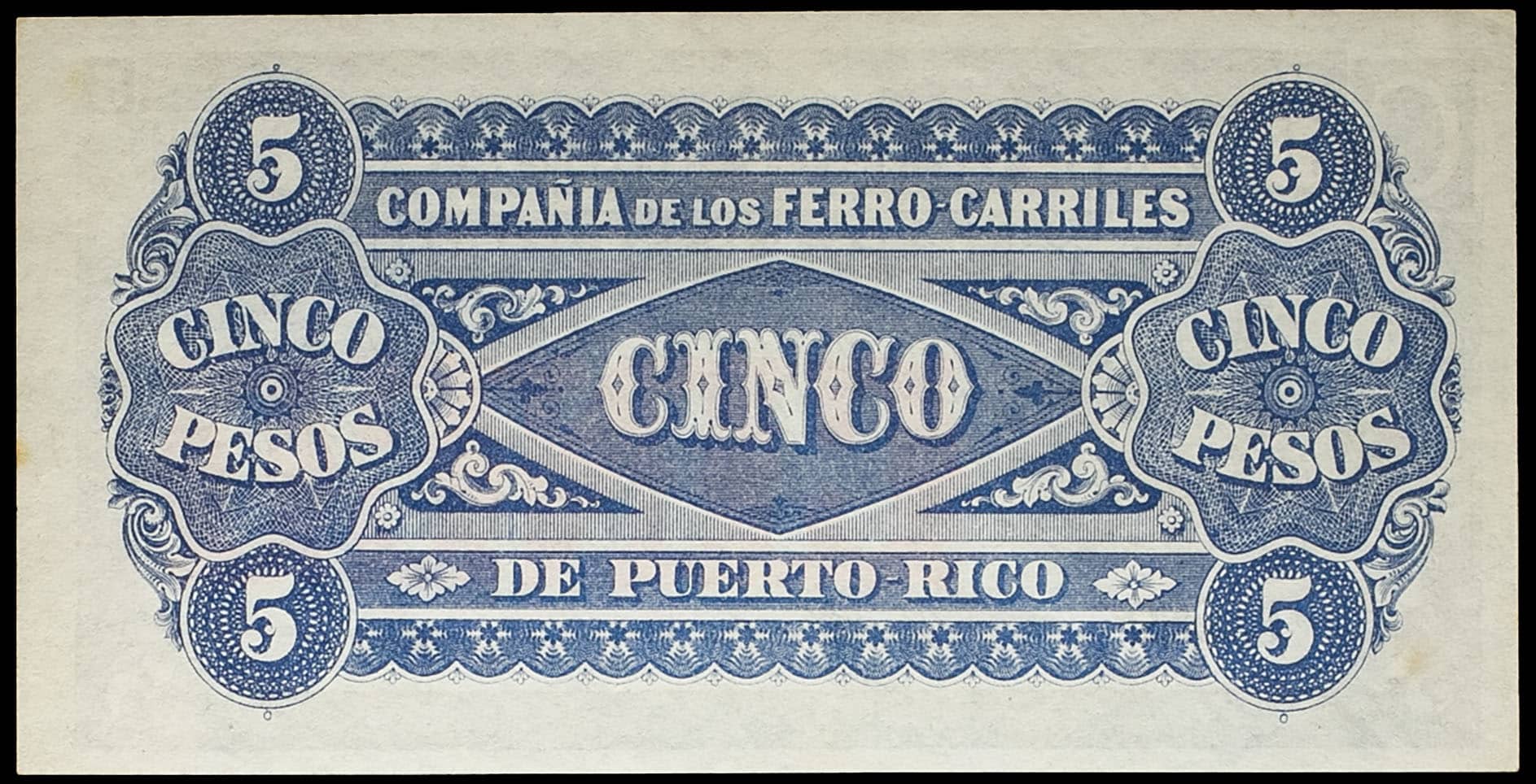- PUERTO RICO 5 pesos - Compañia de los Ferro-Carriles ND (1880).