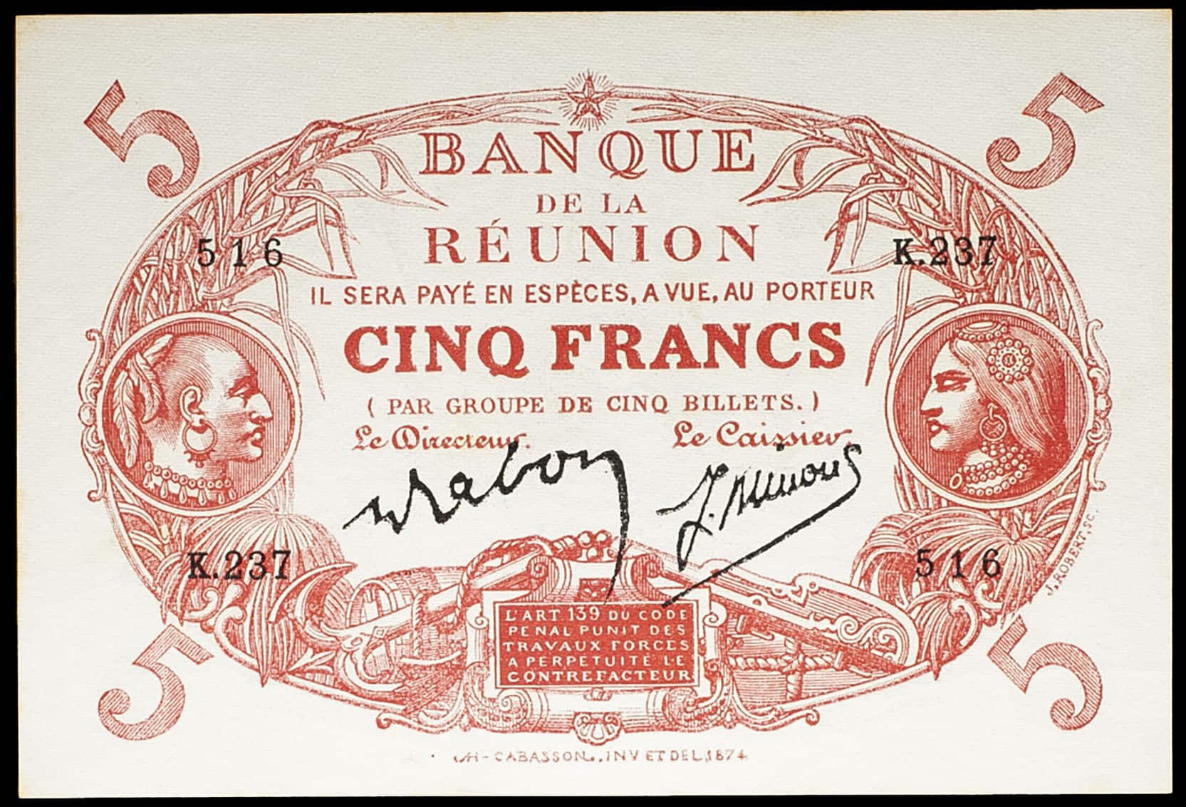 - REUNION 5 francs type “rouge” dit “Cabasson” ND (1944).