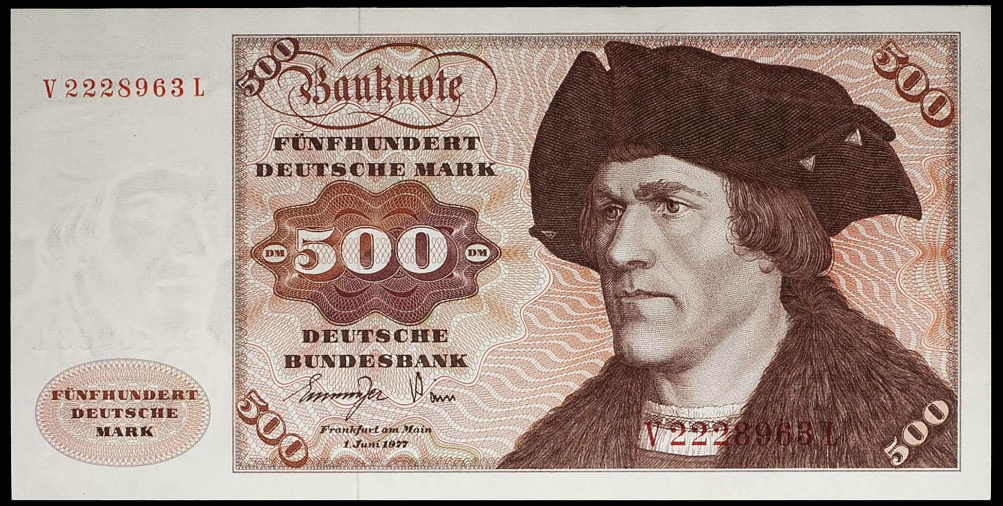 - GERMANY 500 deutsche mark avec le “portrait d’un homme” par Hans Maler 1er juin 1977.