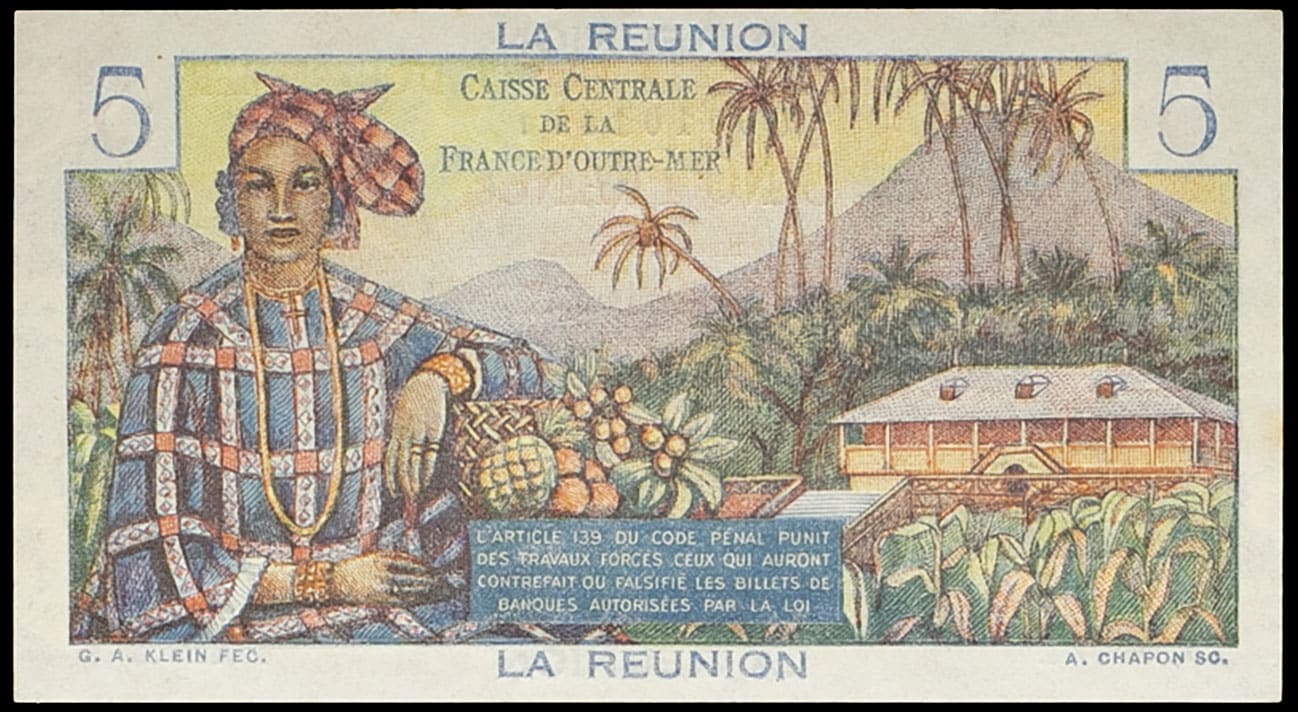 - REUNION 5 francs type “Bougainville” ND (1947).