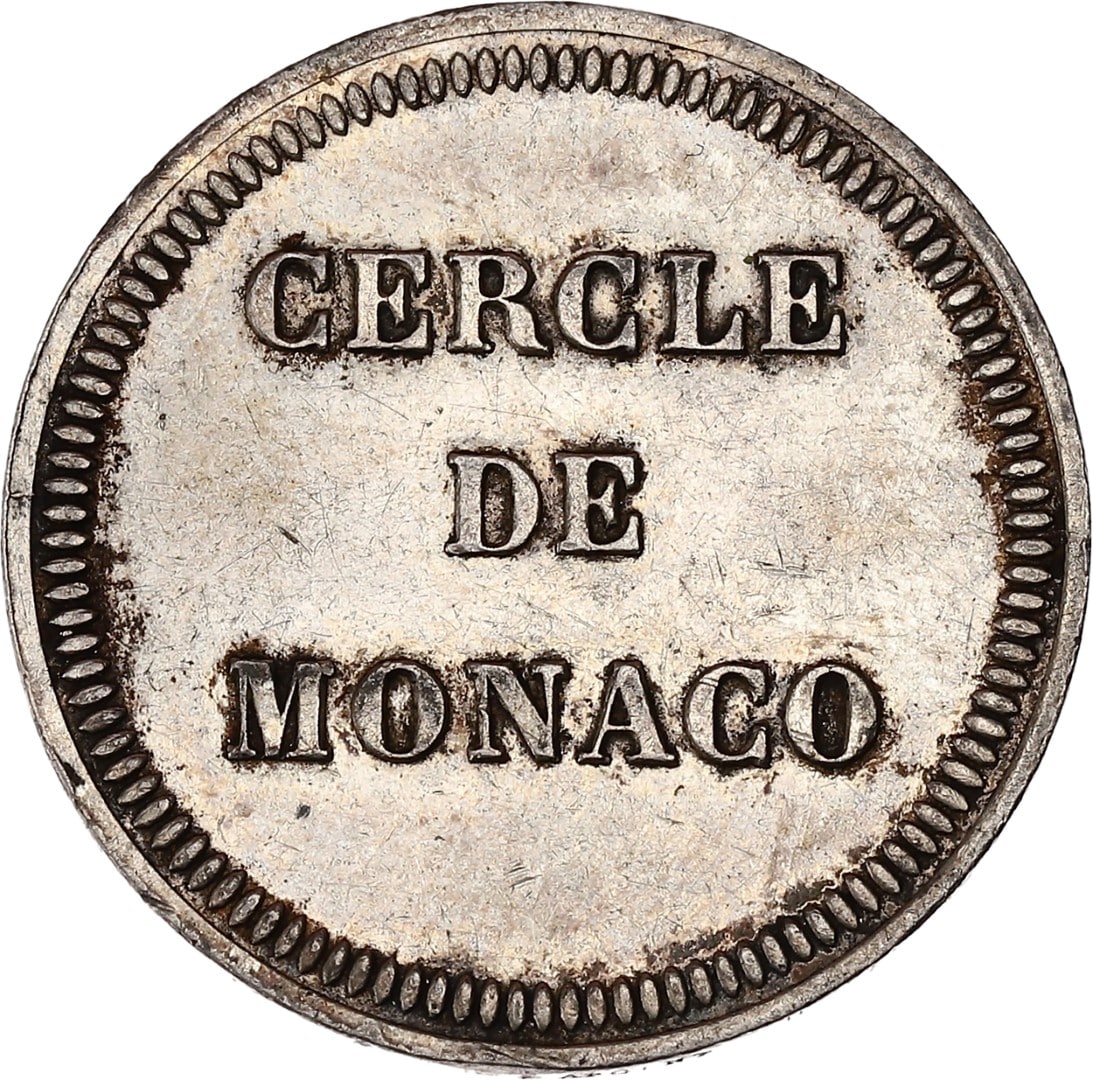 Charles III (1853-1889). Jeton de deux francs du Cercle de Monaco ND.