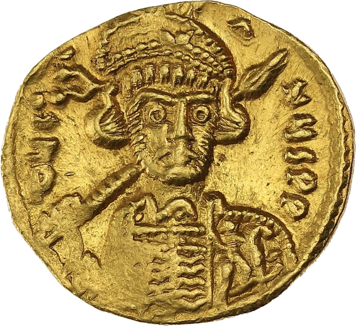 Rv. VICTOA - AIy (officine). Croix potencée avec Héraclius et Tibère à gauche et à droite, portant le stemma, vêtus de la chlamyde, tenant le globe crucigère. À l’exergue CONOB.