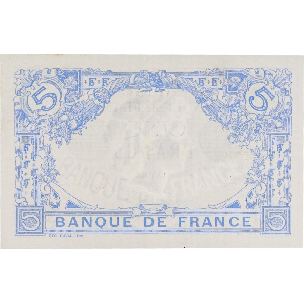 5 francs type 1905 “Bleu à tête filigranée” 9 mars 1912.