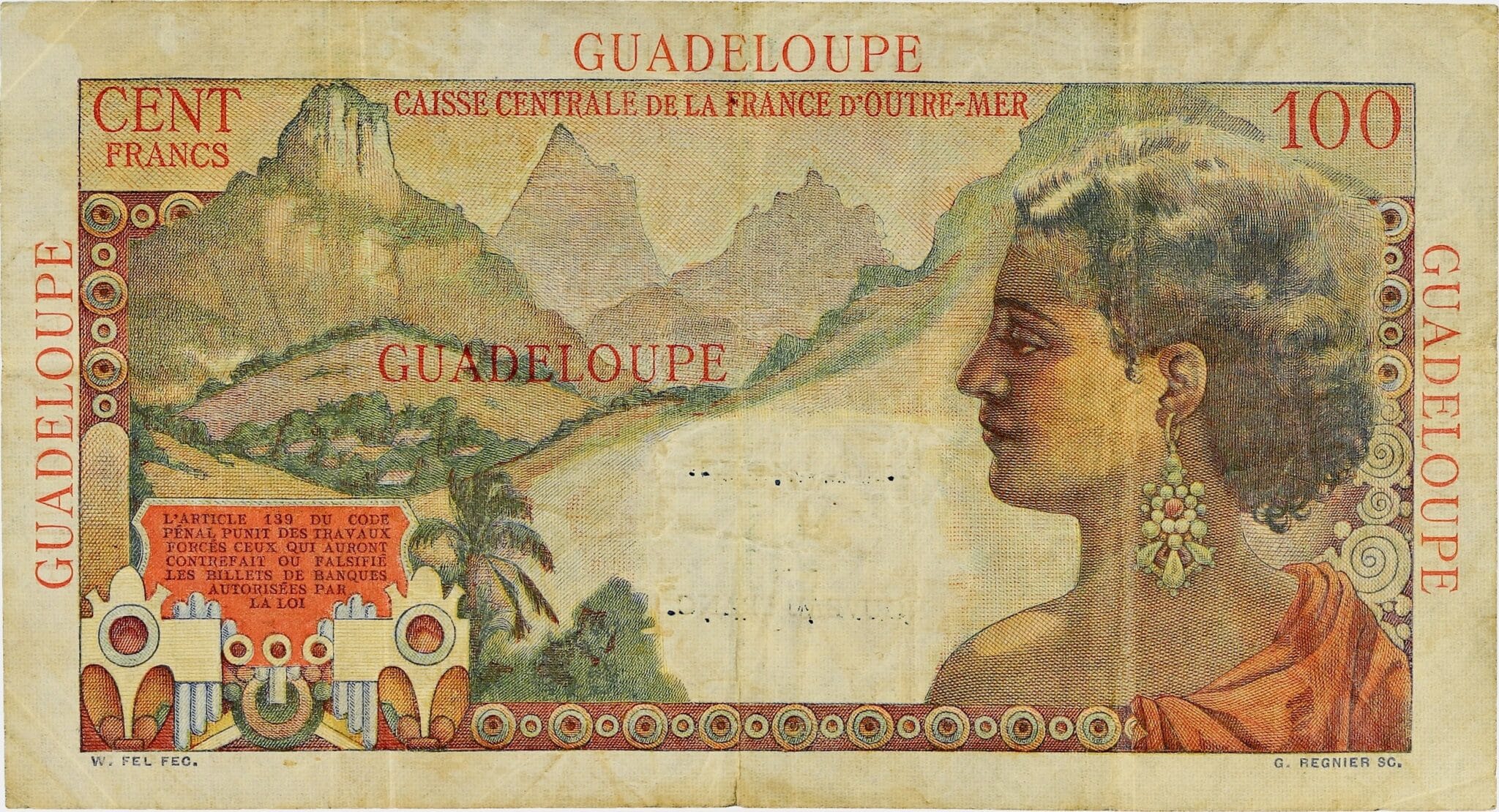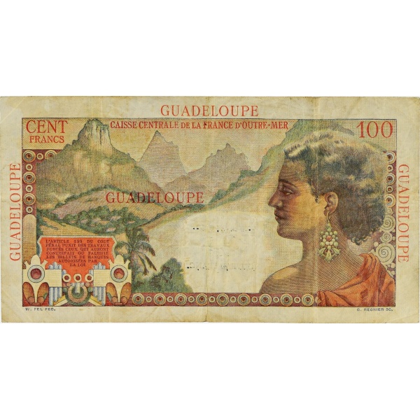 1 nouveau franc surchargé sur 100 francs type "La Bourdonnais" ND (1960).