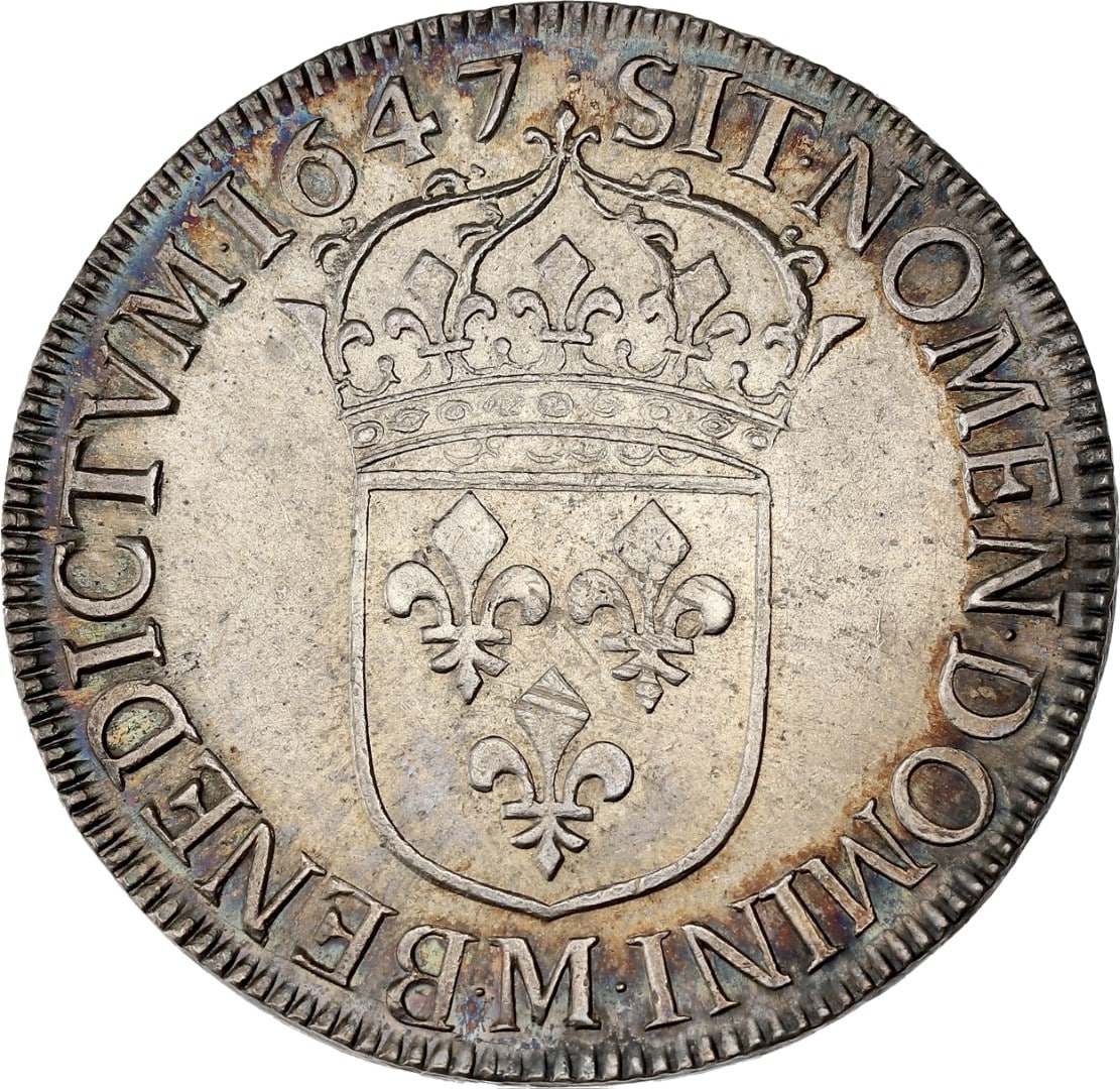 Louis XIV (1643-1715). Écu à la mèche longue 1647, M, Toulouse.