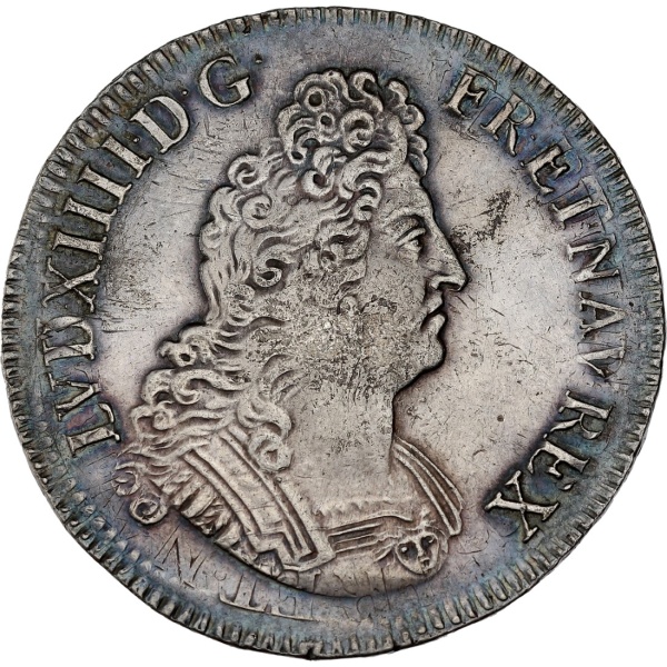 Av. LVD. XIIII. D. G (soleil) - FR. ET. NAV. REX. Buste à droite du Roi, cuirassé à l’antique.