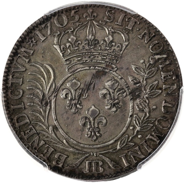 Louis XIV (1643-1715). Pièce de 33 sols aux insignes 1705, BB, Strasbourg.