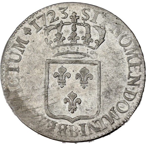 Louis XV (1715-1774). Écu de France, flan neuf 1723, B, Rouen.